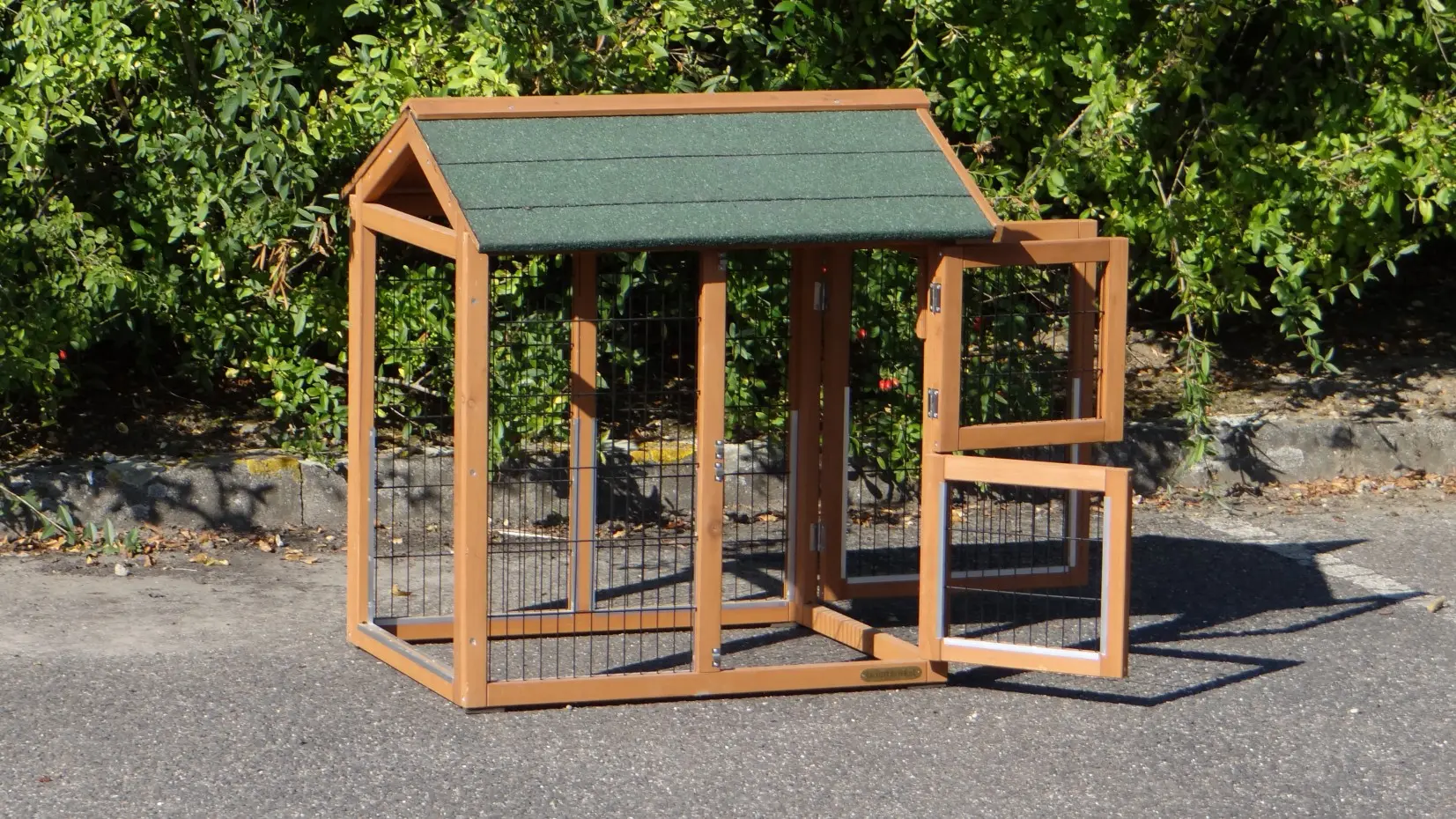 Anbau-auslauf Space Small Antiknabber ist ein vielseitiger Anbau-auslauf, geeignet als Kaninchen- oder Hühnerauslauf, Katzengehege und/oder zur Erweiterung Ihres Kaninchen- oder Hühnerstalls. Dieser Auslauf ist mit Nageschutzstreifen und Gummifüßen sowie geräumigen Türen ausgestattet. Dieser Kaninchen- und Hühnerauslauf ist auf einer Seite offen und kann beispielsweise an einen bestehenden Kaninchenstall angeschlossen werden.