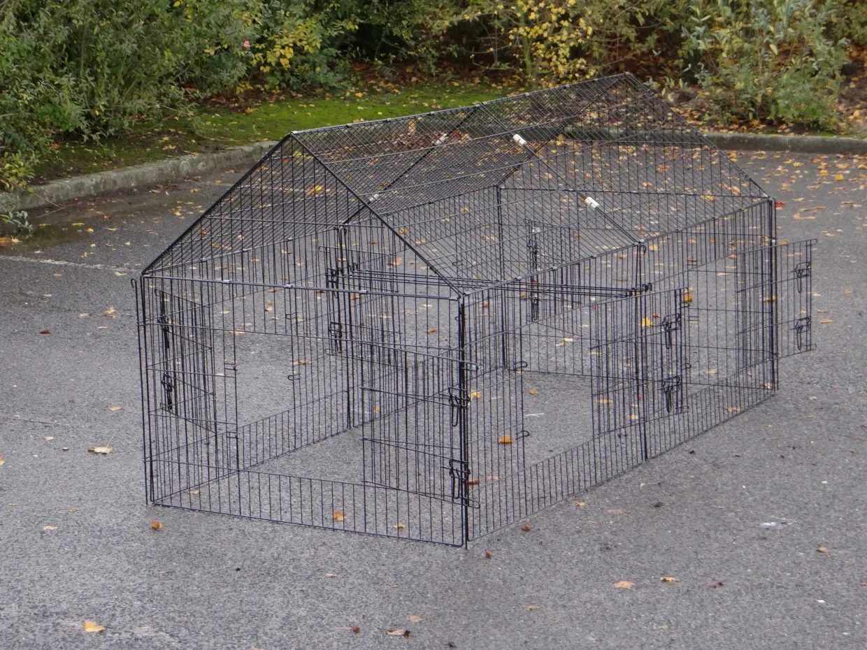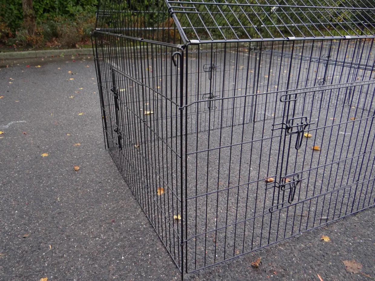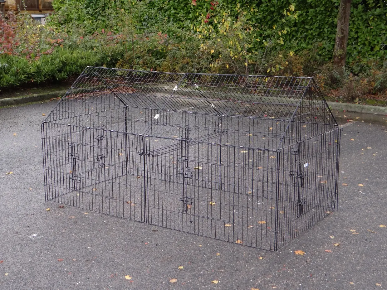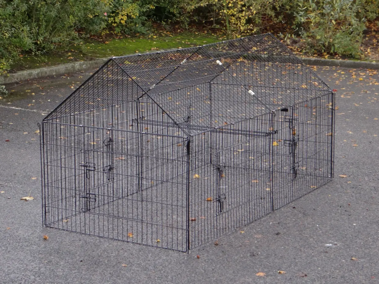 Der Freilaufgehege Chanel ist ein stabiles Laufgitter aus pulverbeschichtetem Stahl. Geeignet für Kaninchen, Hühner, Katzen, Welpen und kleine Hunde. Mit 6 großen Türen und Erweiterungsmöglichkeiten. Perfekt kombinierbar mit anderen Tierställen. Die Seitenwand ist etwa 69 cm hoch.