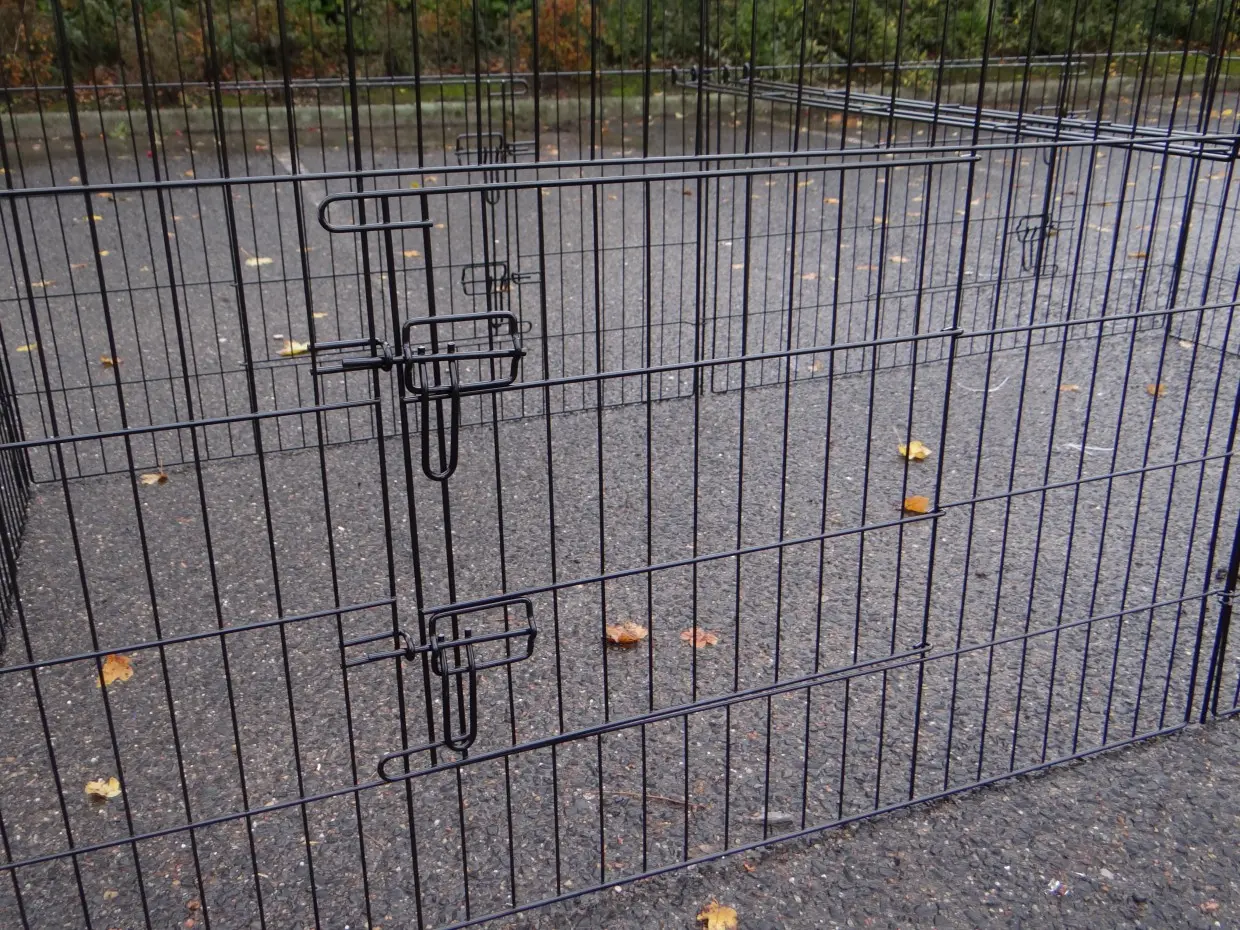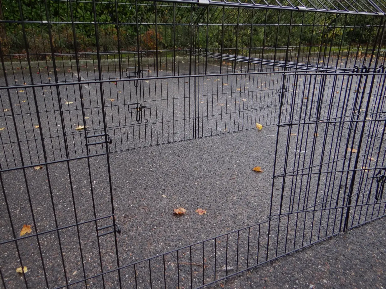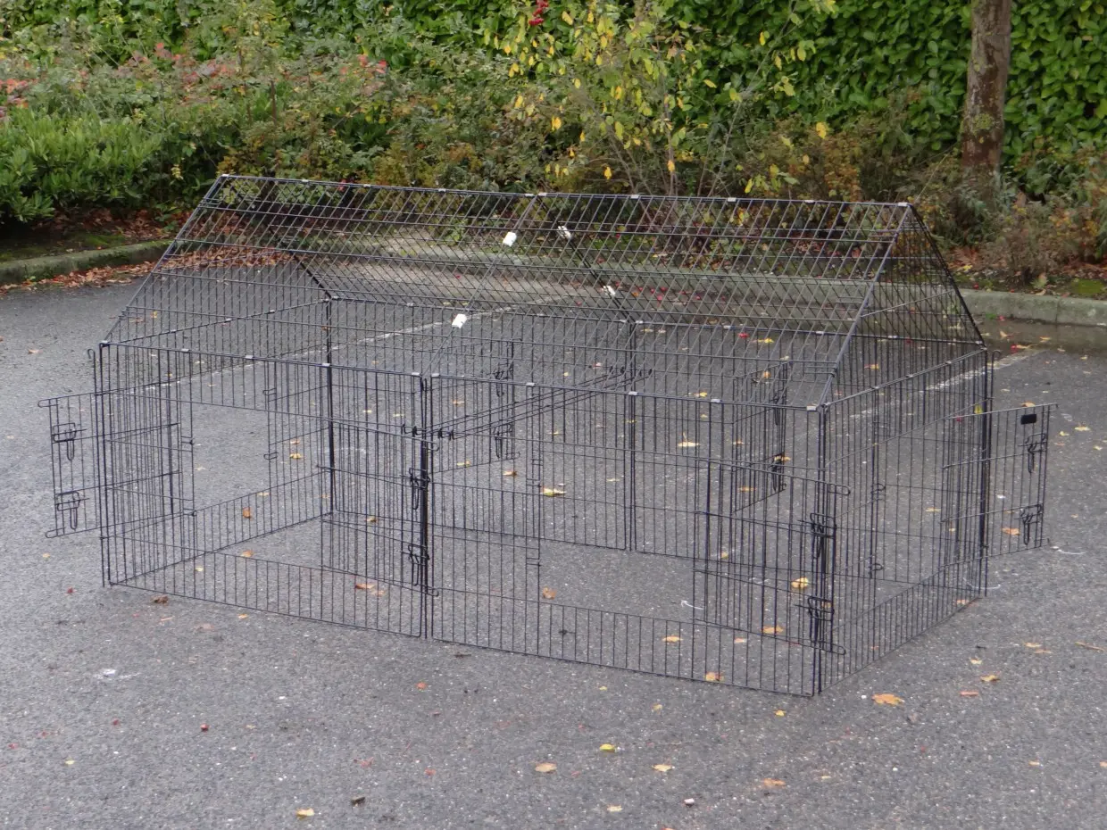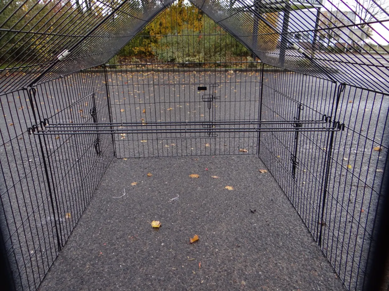 Der Freilaufgehege Chanel ist ein stabiles Laufgitter aus pulverbeschichtetem Stahl. Geeignet für Kaninchen, Hühner, Katzen, Welpen und kleine Hunde. Mit 6 großen Türen und Erweiterungsmöglichkeiten. Perfekt kombinierbar mit anderen Tierställen. Die Seitenwand ist etwa 69 cm hoch.