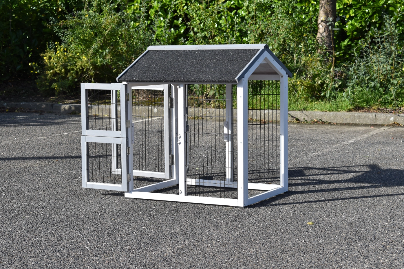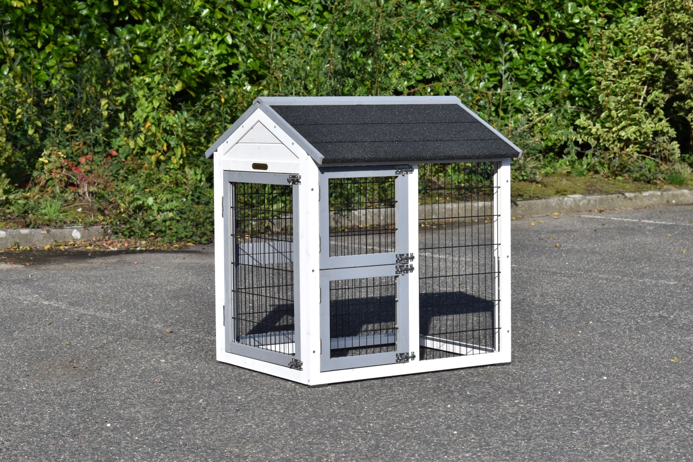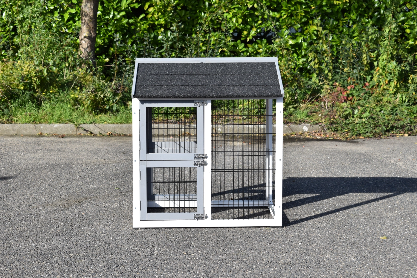 - Wenn möglich stellen Sie den Stall auf einem geschützten Platz.