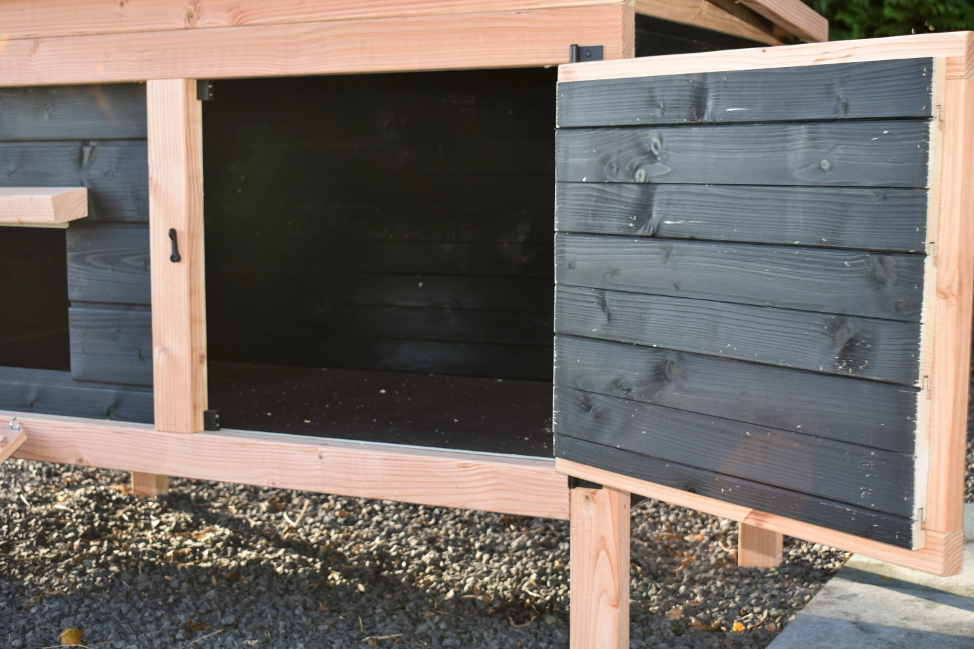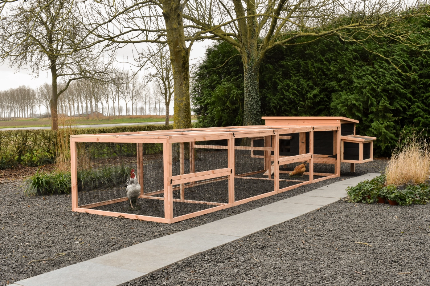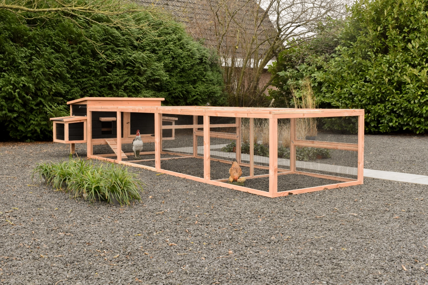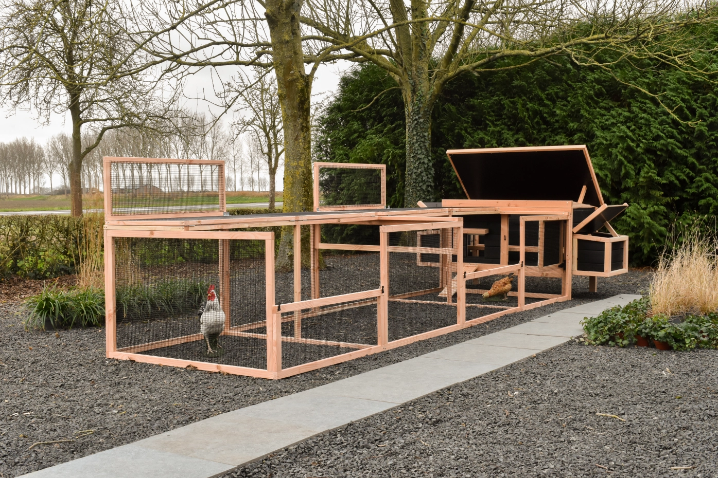 Der Hühnerstall Eggy mit doppeltem Auslauf bietet Ihren Hühnern viel Platz und Komfort. Der praktische Auslauf erleichtert die Reinigung und macht die Pflege mühelos. Die ideale Wahl für eine gesunde und sichere Umgebung für Ihre Hühner.