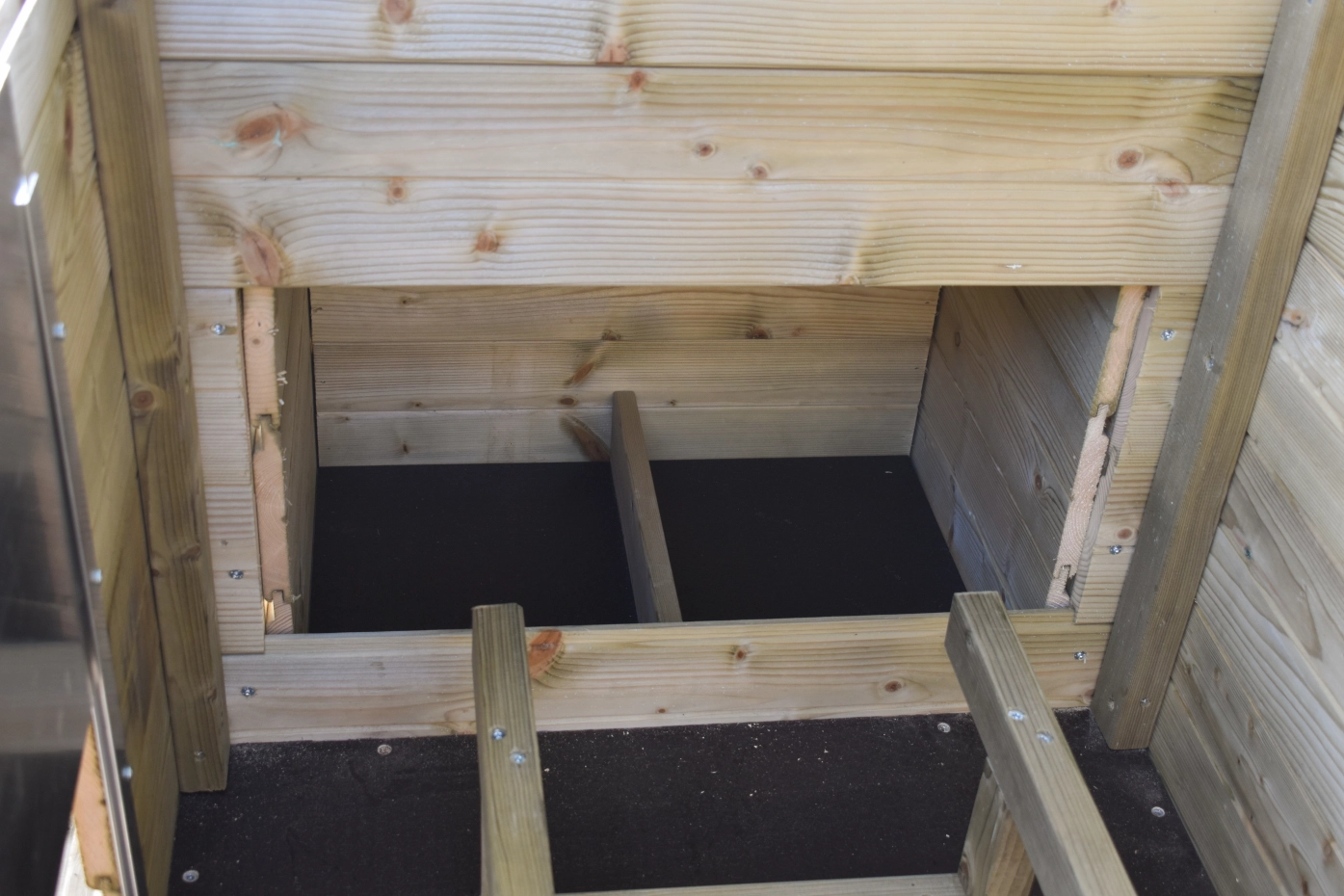 - Dieser Hühnerstall ist mit einem Legenest ausgestattet.