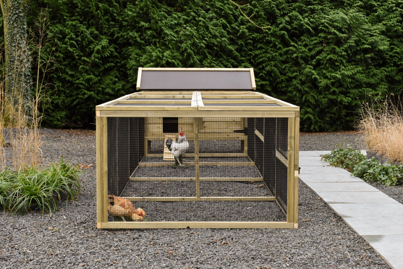 Der Hühnerstall Eggy mit doppeltem Auslauf und 2 Legenestern bietet Ihren Hühnern ausreichend Platz und Komfort. Dank des praktischen Auslaufs lässt sich der Stall einfach reinigen, was die Pflege schnell und unkompliziert macht. Ideal für eine gesunde und hygienische Umgebung. Für ein schönes Detail an der Tür können Sie ein hübsches Holztier mitbestellen. Das verleiht dem Stall eine besonders charmante Ausstrahlung!