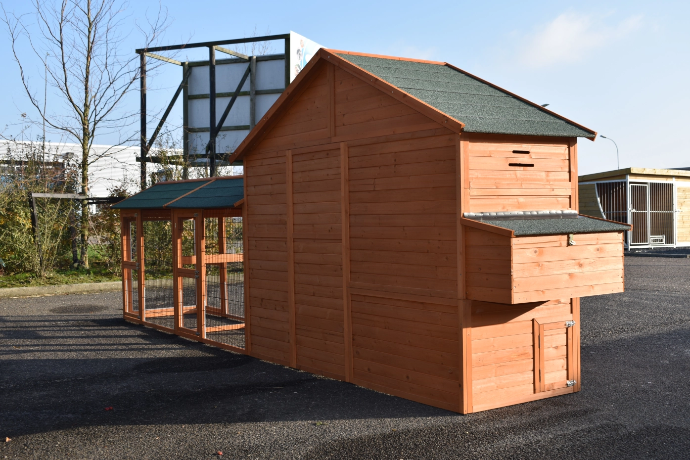 - Dieser Hühnerstall ist mit einem Legenest ausgestattet.