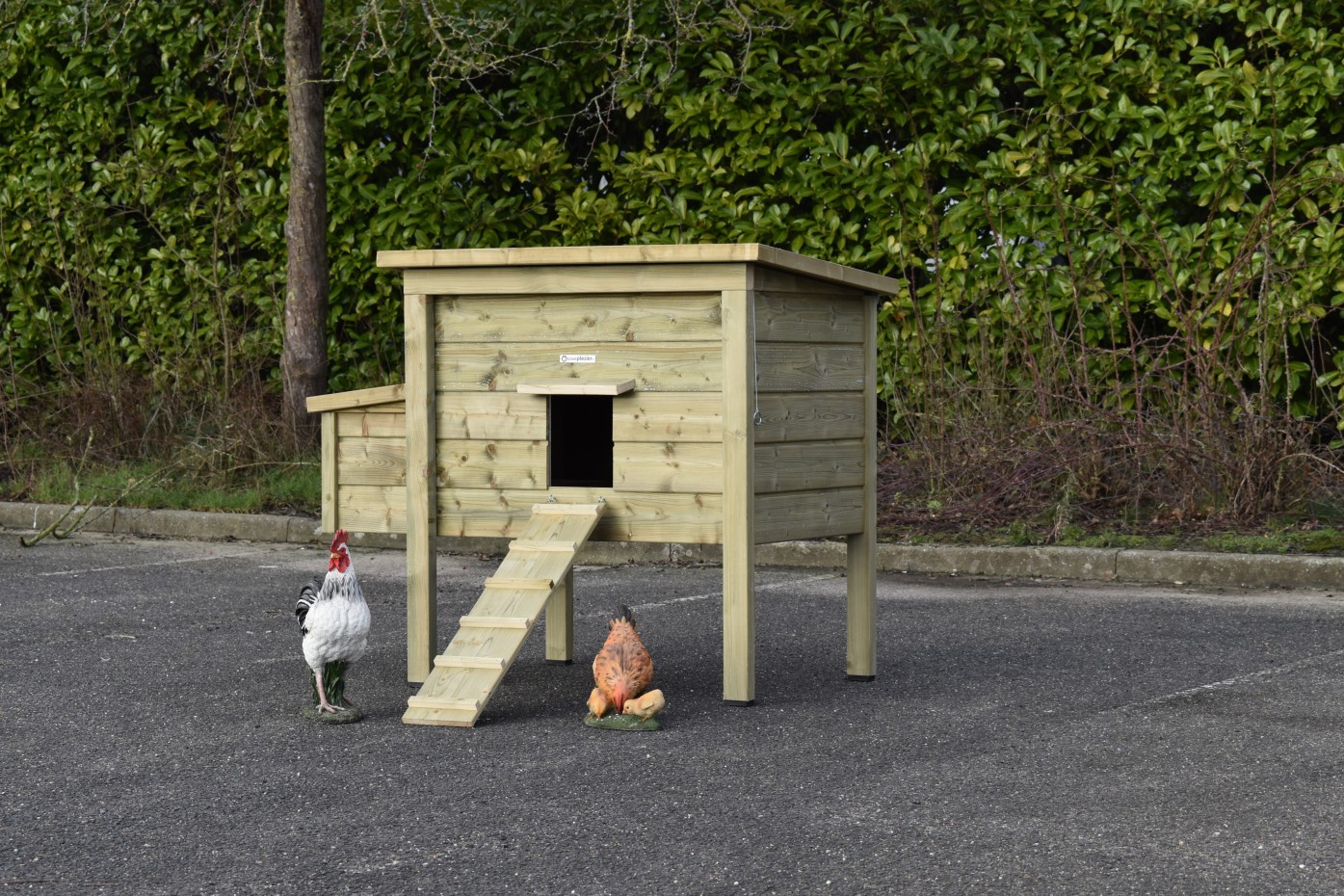 - Dieser Hühnerstall ist mit Kunststofffüßen ausgestattet
