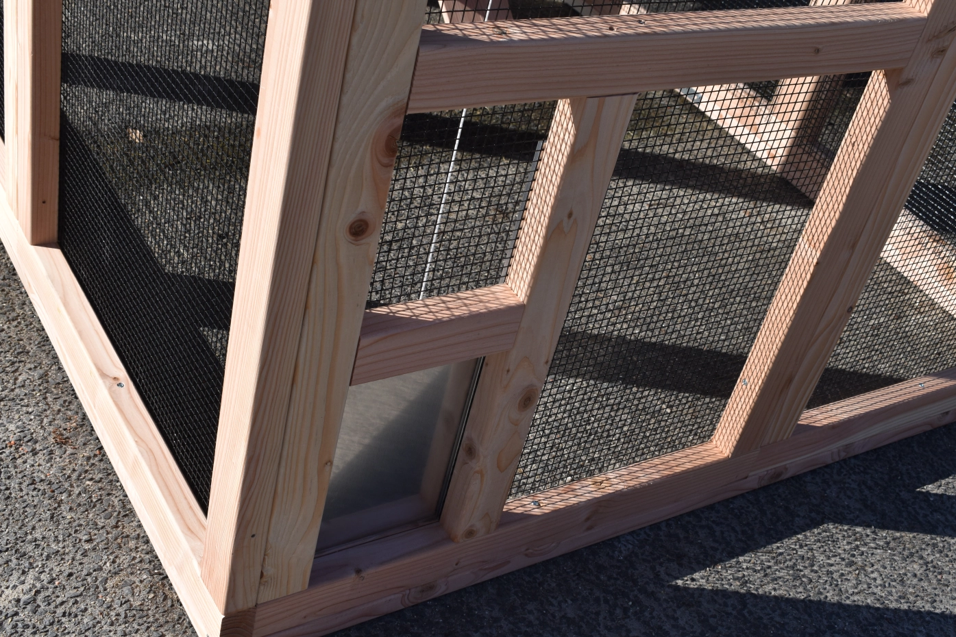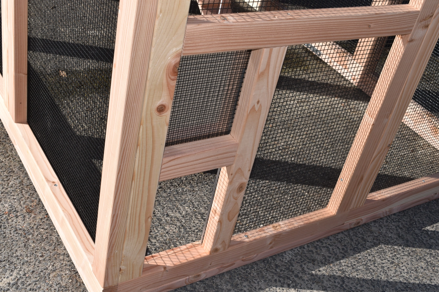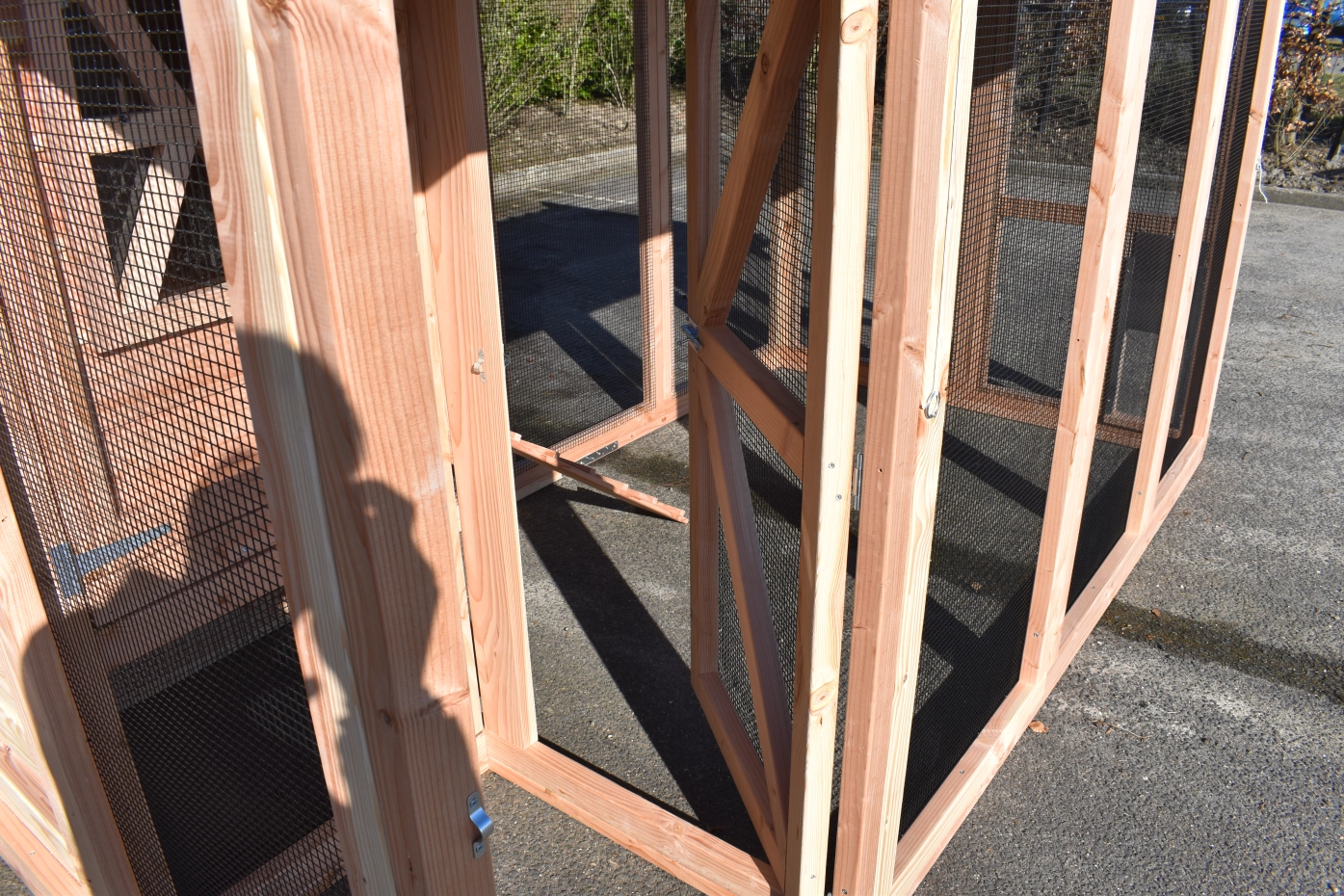• Die Paneele sind ganz fertig. Bretter schon montiert, Tür und Schlösser schon montiert und Gitter schon befestigt. Deswegen ist der Aufbau ganz einfach.