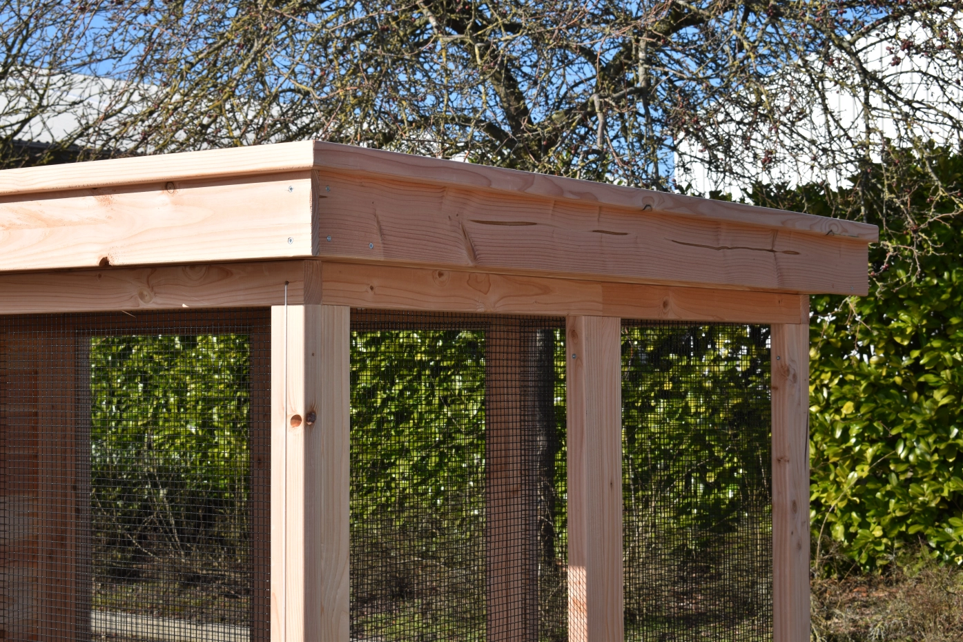 Hühnerstall Flex 4.2 ist einen geräumigen Hühnerstall. Weil viel Gitter im Stall benützt ist, können Sie die Hühner immer gut sehen! Am Schutzhaus ist auch noch ein Legenest verbunden so dass Sie die Eier immer einfach erreichen können.