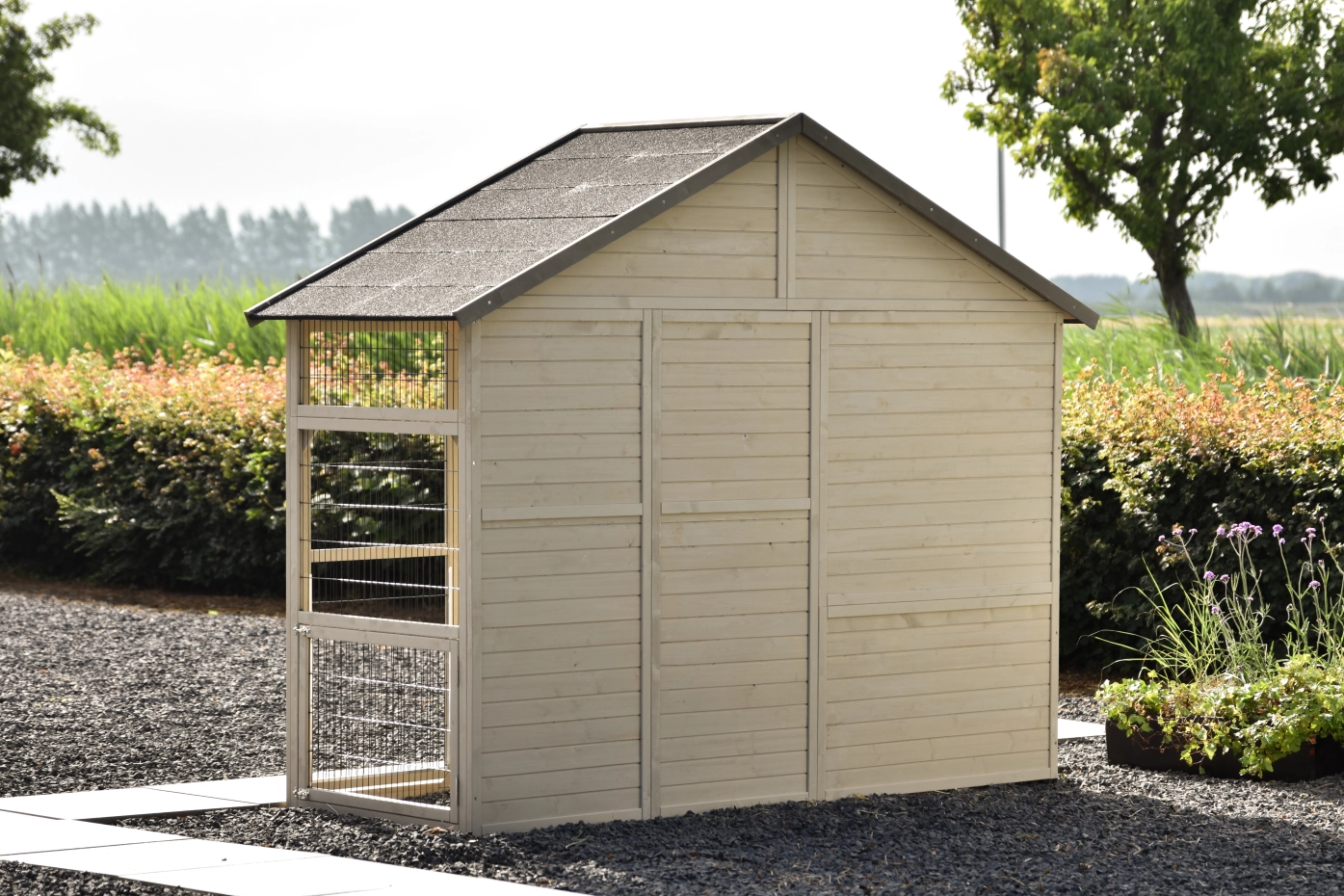 Der Stall hat auch einen Auslauf und einen Schlafbereich mit zwei Sitzstangen. Unter dem Dach befindet sich ein großer Speicherboden. Der Hühnerstall Holiday Large ist für die Unterbringung von 6-10 Hühnern geeignet.