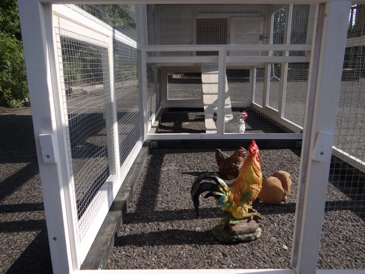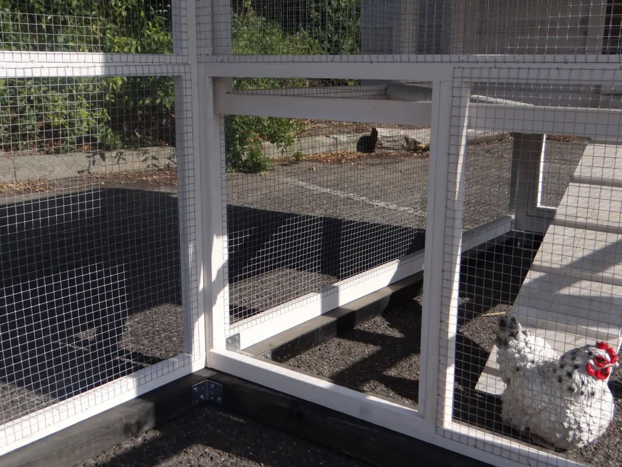- Der Auslauf hat ein Dach aus Gitter (ca. 12x12mm)