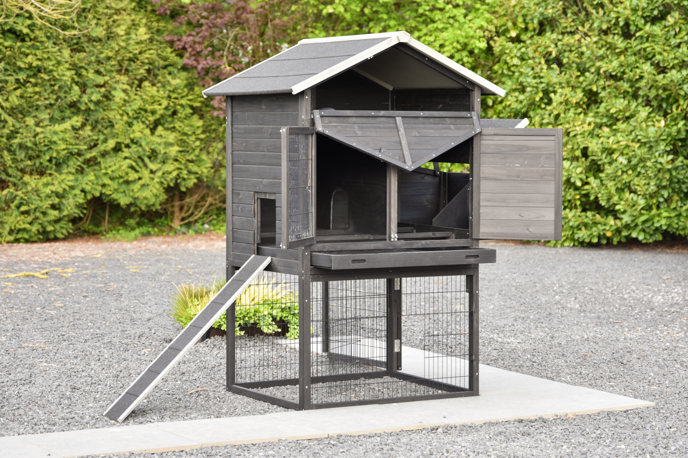 • Die Türen dieses Kaninchenstalls sind mit doppelten Schieberiegeln ausgestattet
