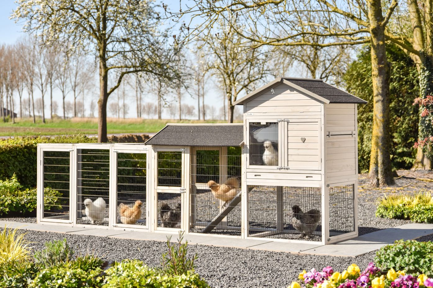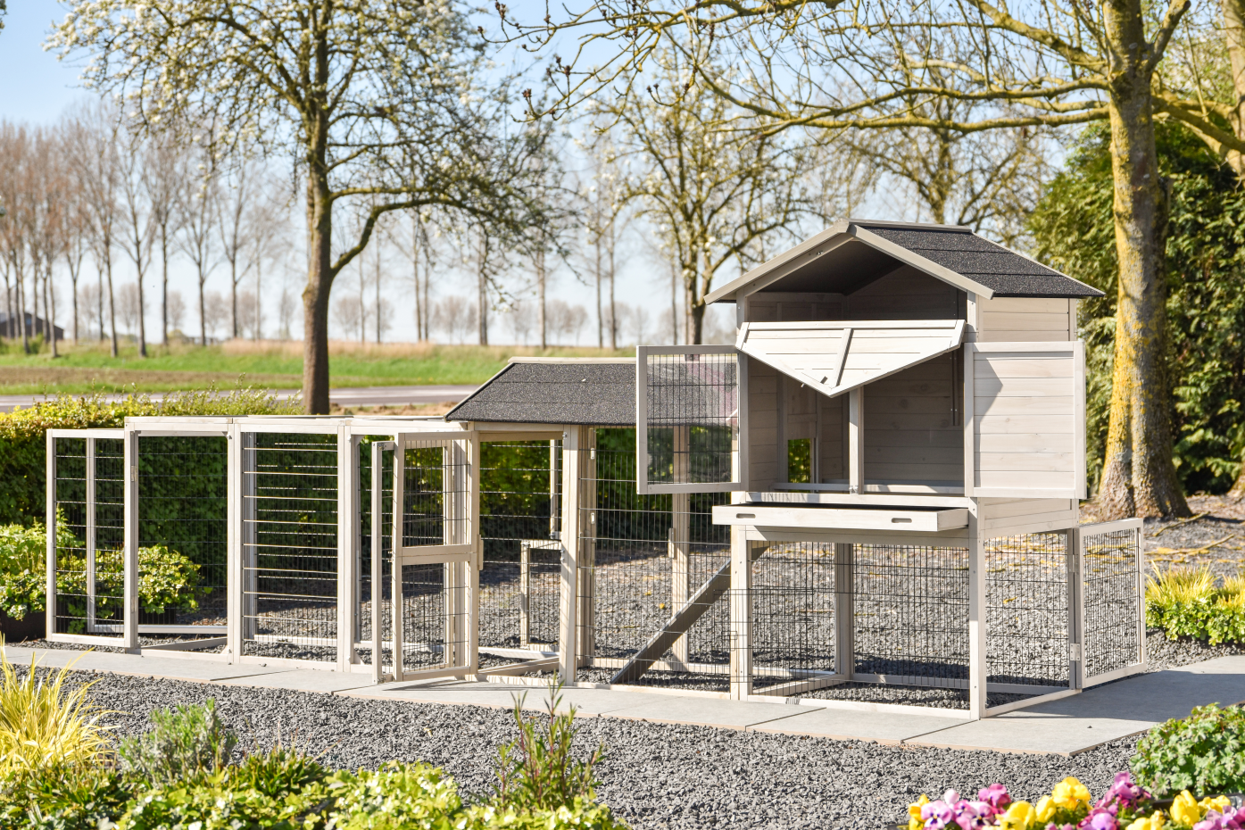 Außerdem lässt sich der Hühnerstall Prestige Large einfach mit zusätzlichen Anbauläufen für noch mehr Platz erweitern