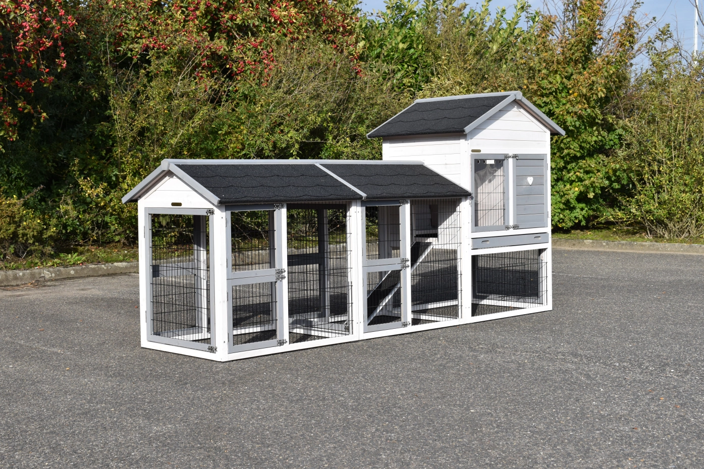 Hühnerstall Prestige Medium wurde mit zwei Ausläufen erweitert – ein wunderschöner Stall für Ihre Hühner.