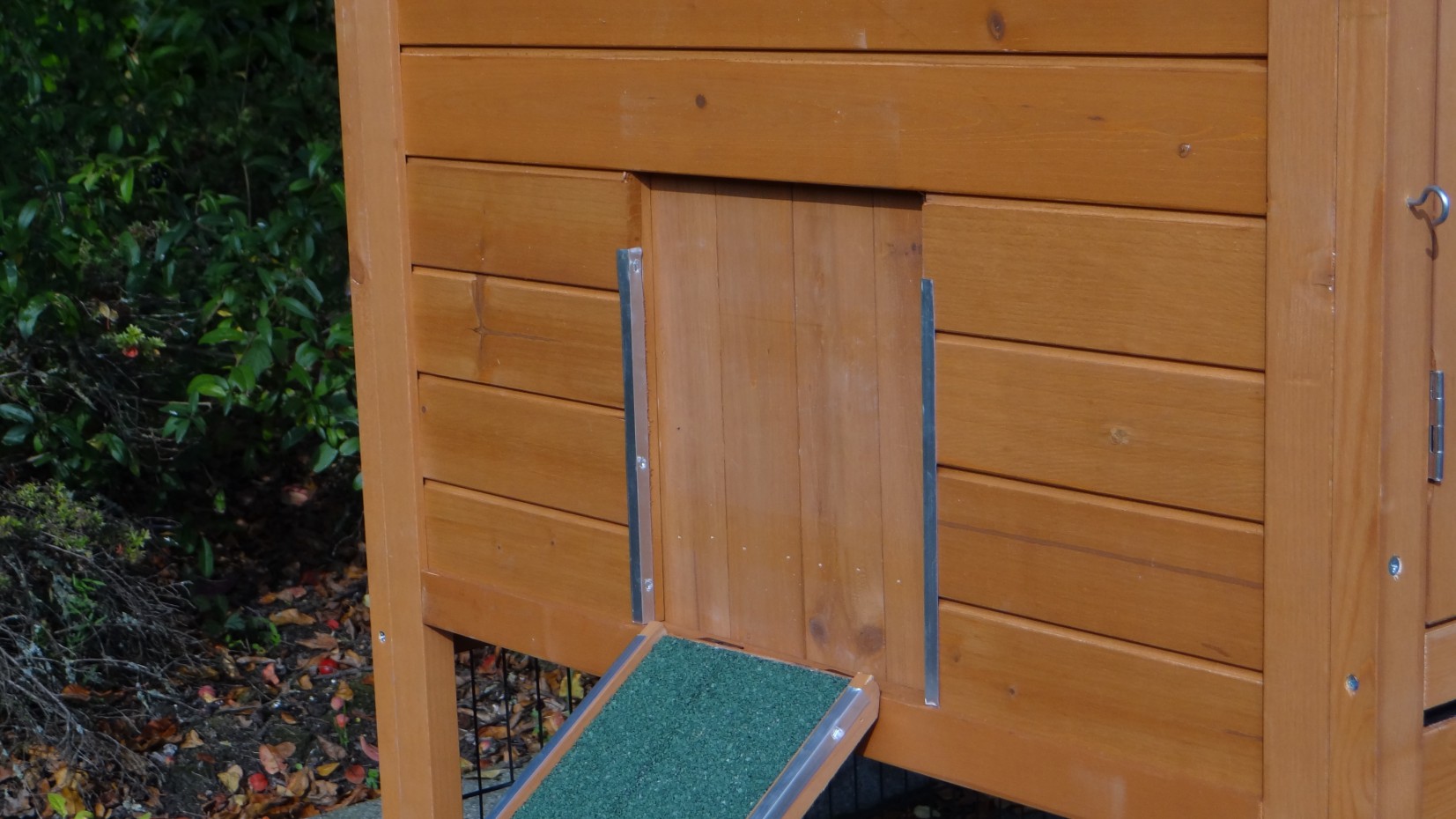 - Die Türen dieses Kaninchenstalls sind mit doppelten Schieberiegeln ausgestattet