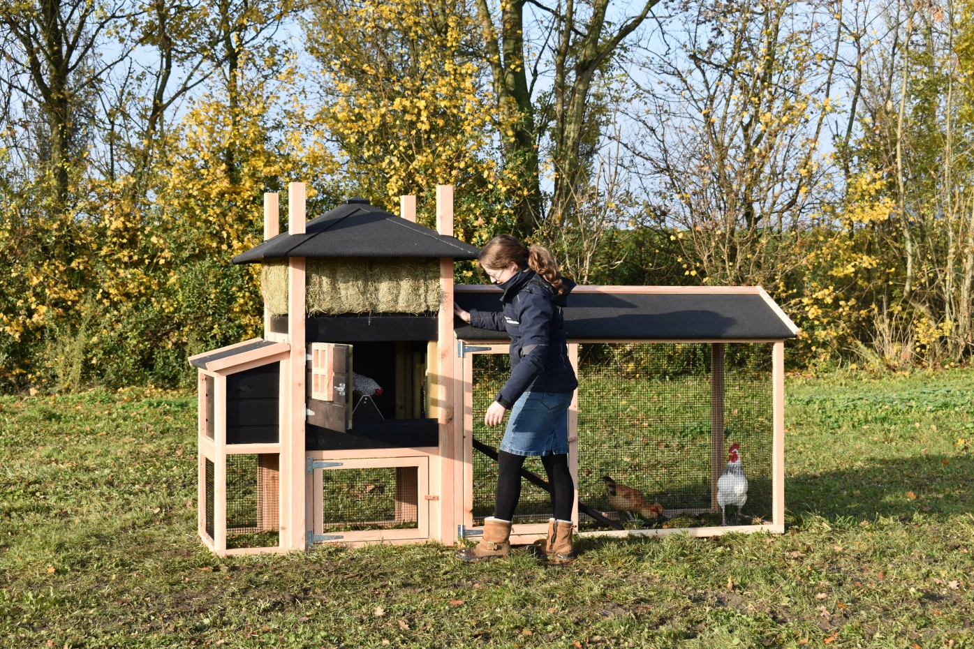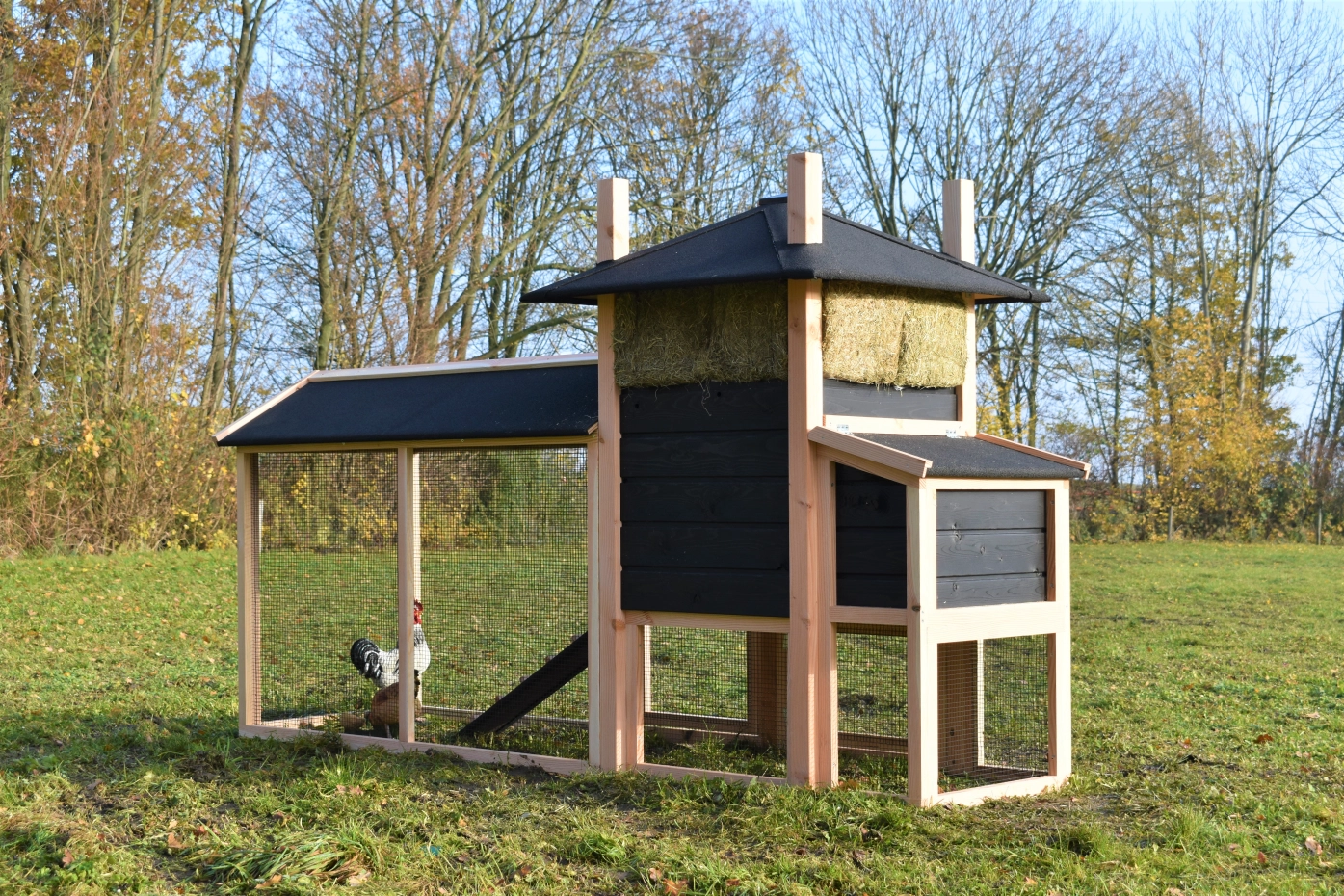 Auslauf mit Spitzdach · Legenest · Douglasien/schwarz