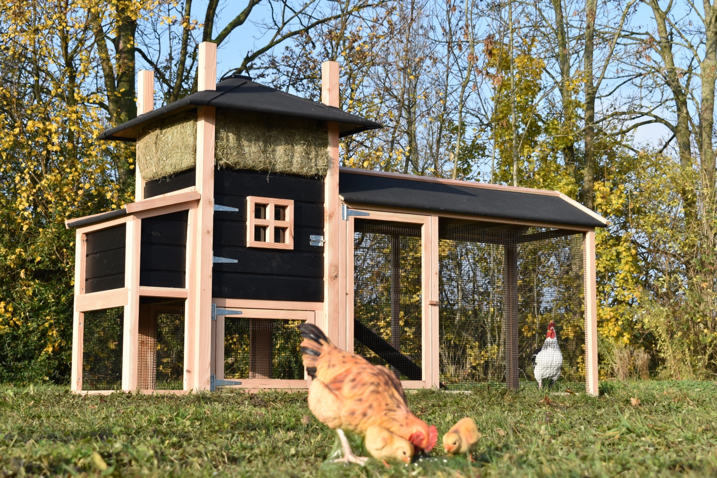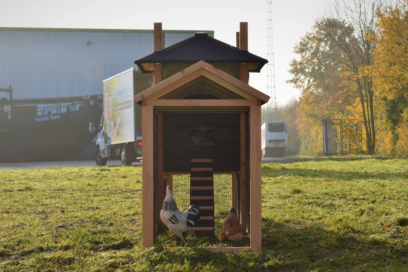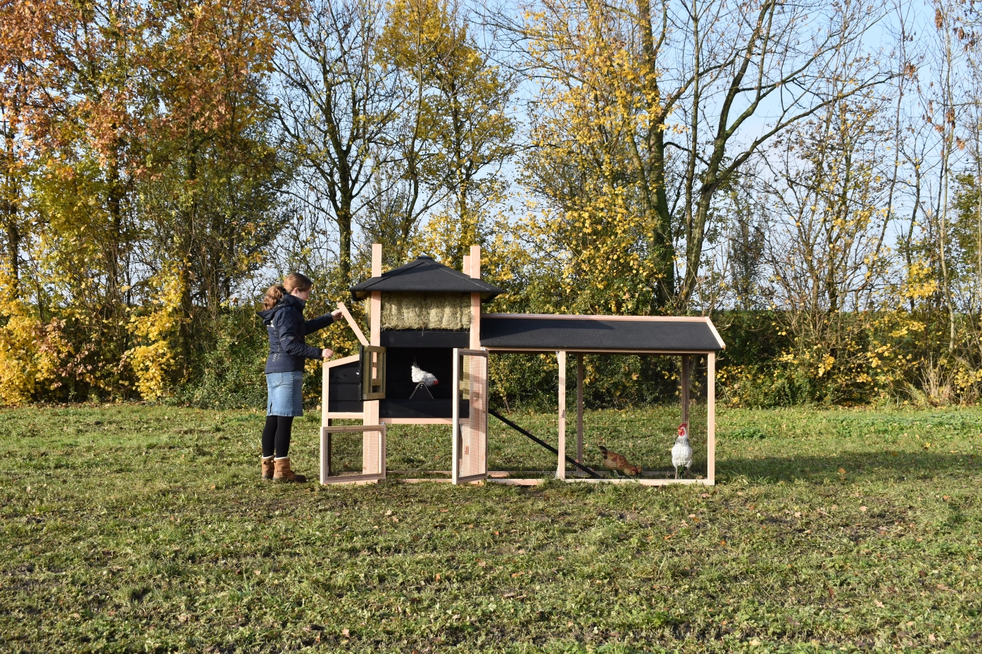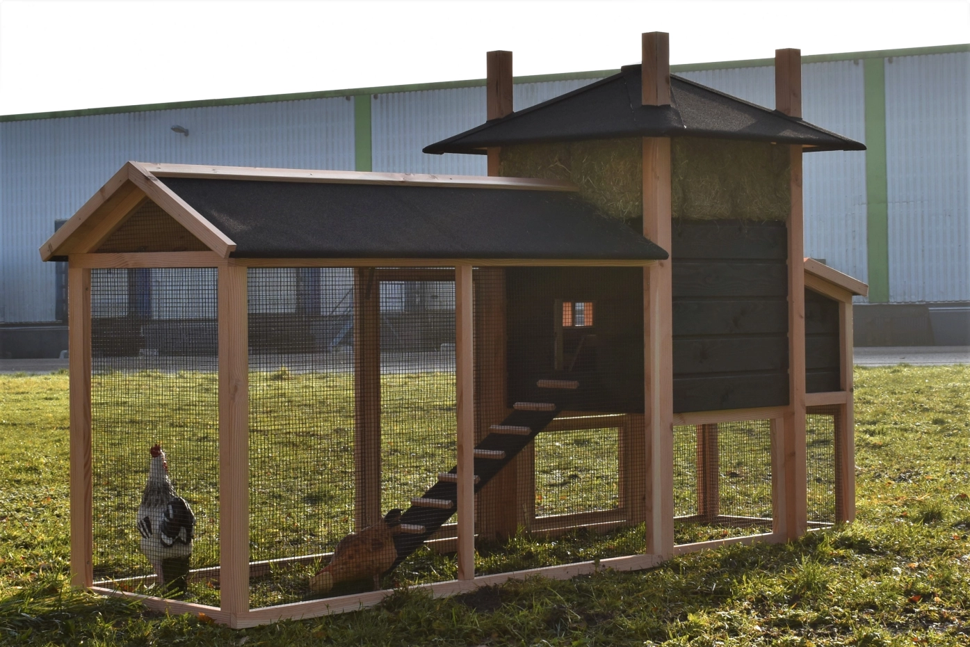 - Dieser Hühnerstall ist mit einem Legenest ausgestattet.