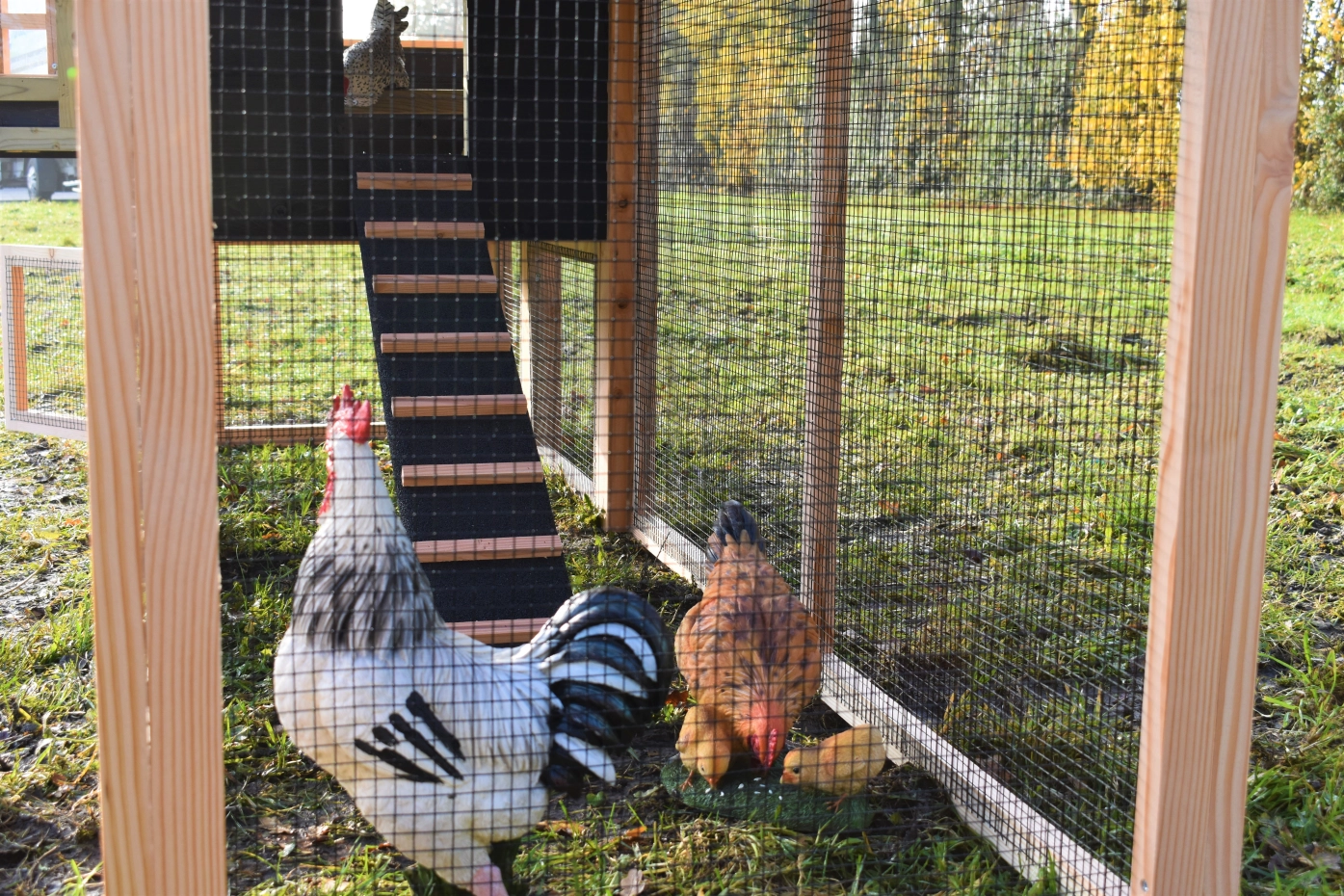 - Dieser Hühnerstall ist mit Kunststofffüßen ausgestattet