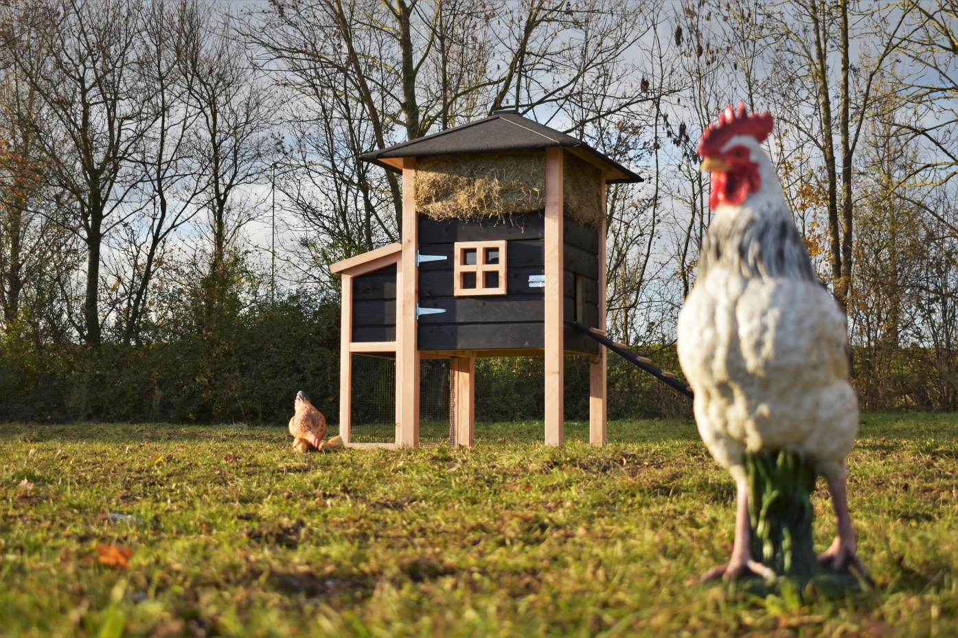 - Dieser Hühnerstall ist mit Kunststofffüßen ausgestattet
