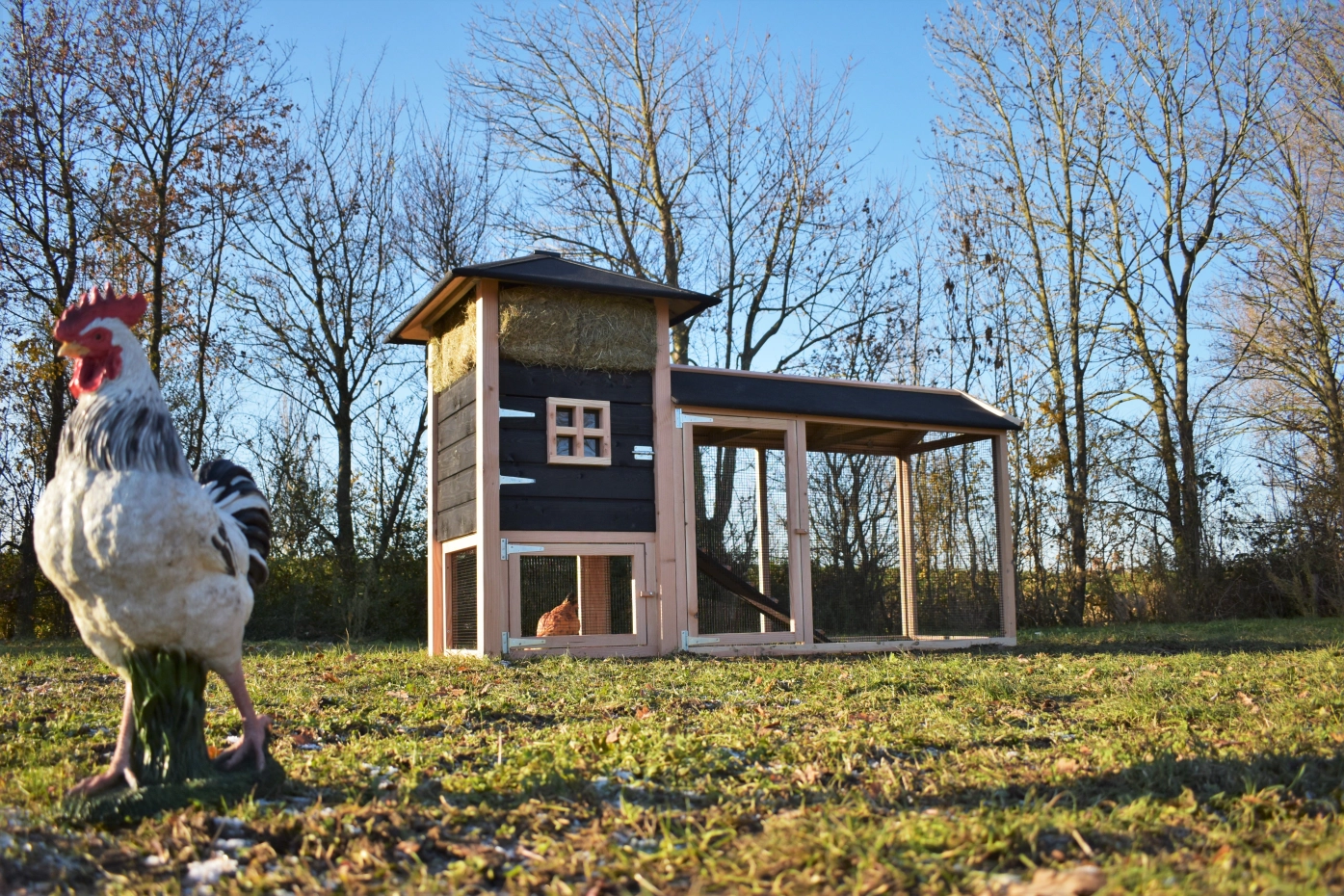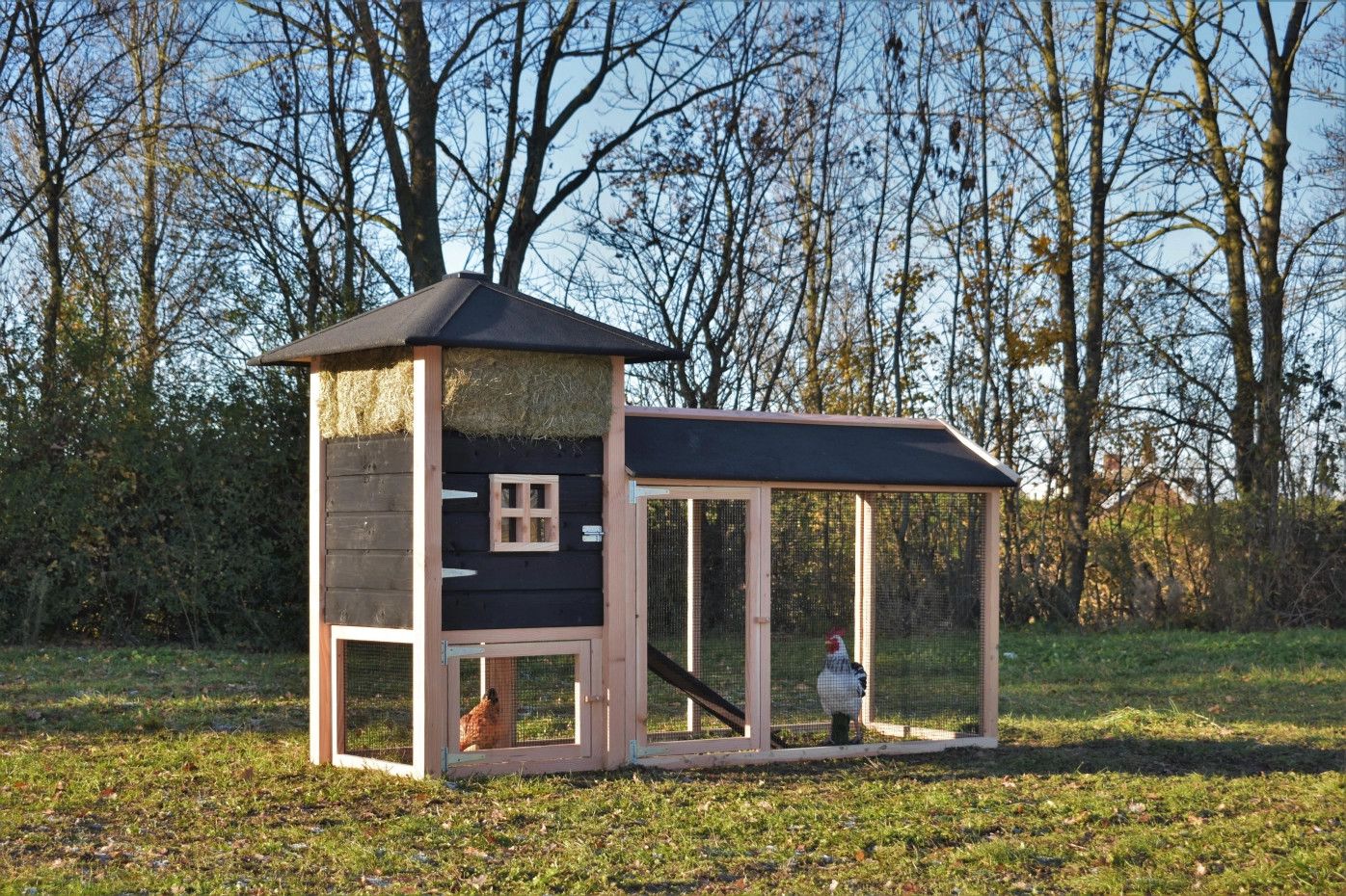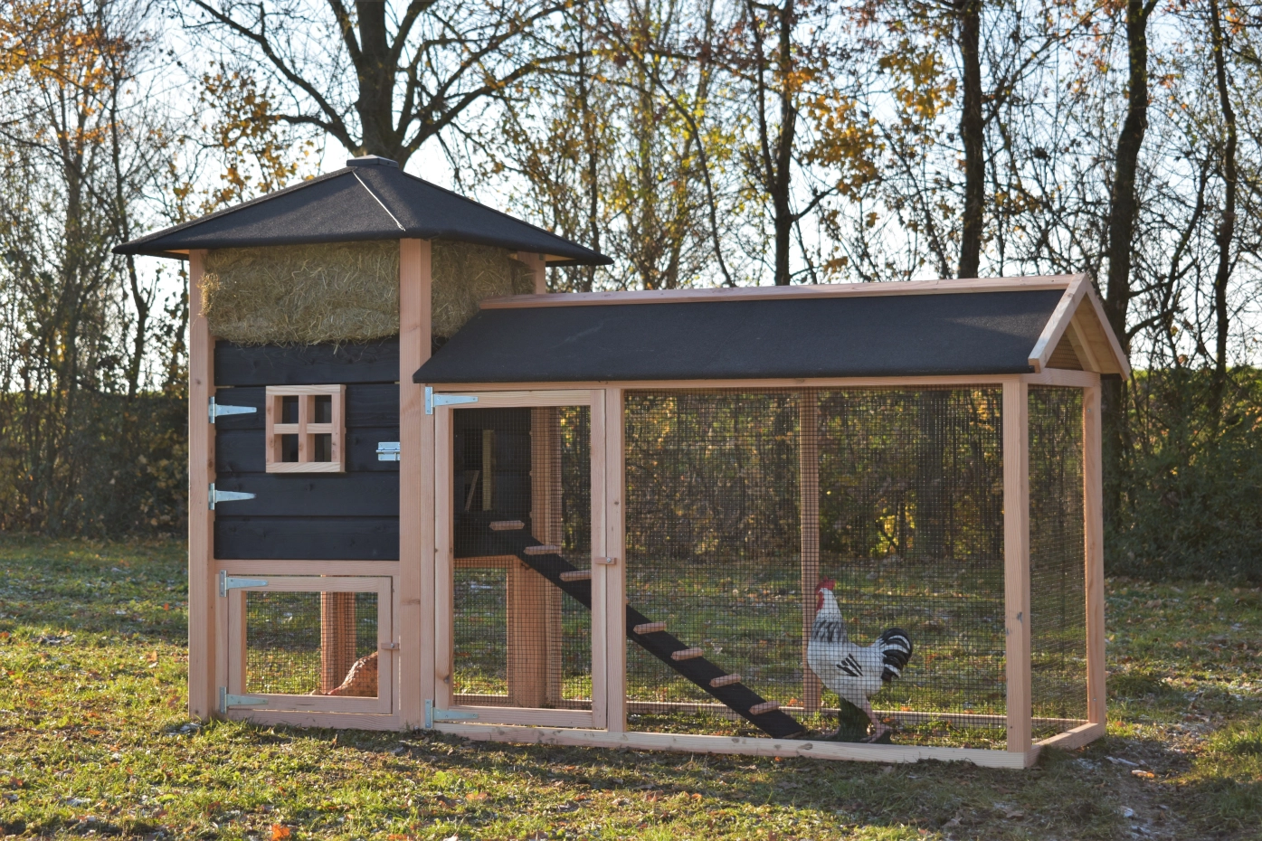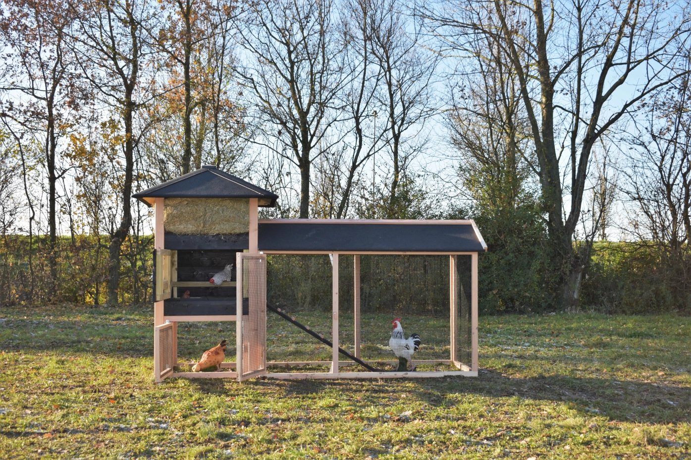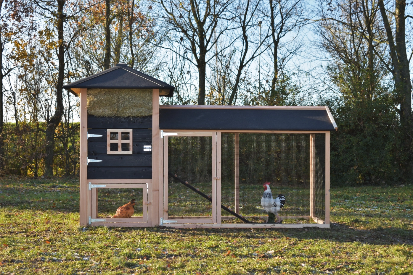 Mit diesem Heuhaufen Rosanne mit Auslauf kaufen Sie einen schönen Dachboden mit praktischen Eigenschaften. Diese Stall ist herstellt aus Douglasienholz und schwarz imprägniertes Fichtenholz! Da die Stangen nicht durch das Dach ragen, wirkt der Stall ruhiger. Dennoch haben Sie für relativ wenig Geld einen soliden und schönen Stall, in dem Sie problemlos 3 bis 5 Hühner halten können. Die Türen sind so breit wie möglich, damit Sie genügend Platz zum Reinigen usw. haben. Der Auslauf ist mit schwarzem Mesh versehen, wodurch er leicht zu durchschauen ist. Wenn Sie Heu dazu bestellen, ist dies ein idealer Stall mit einem schönen Design!