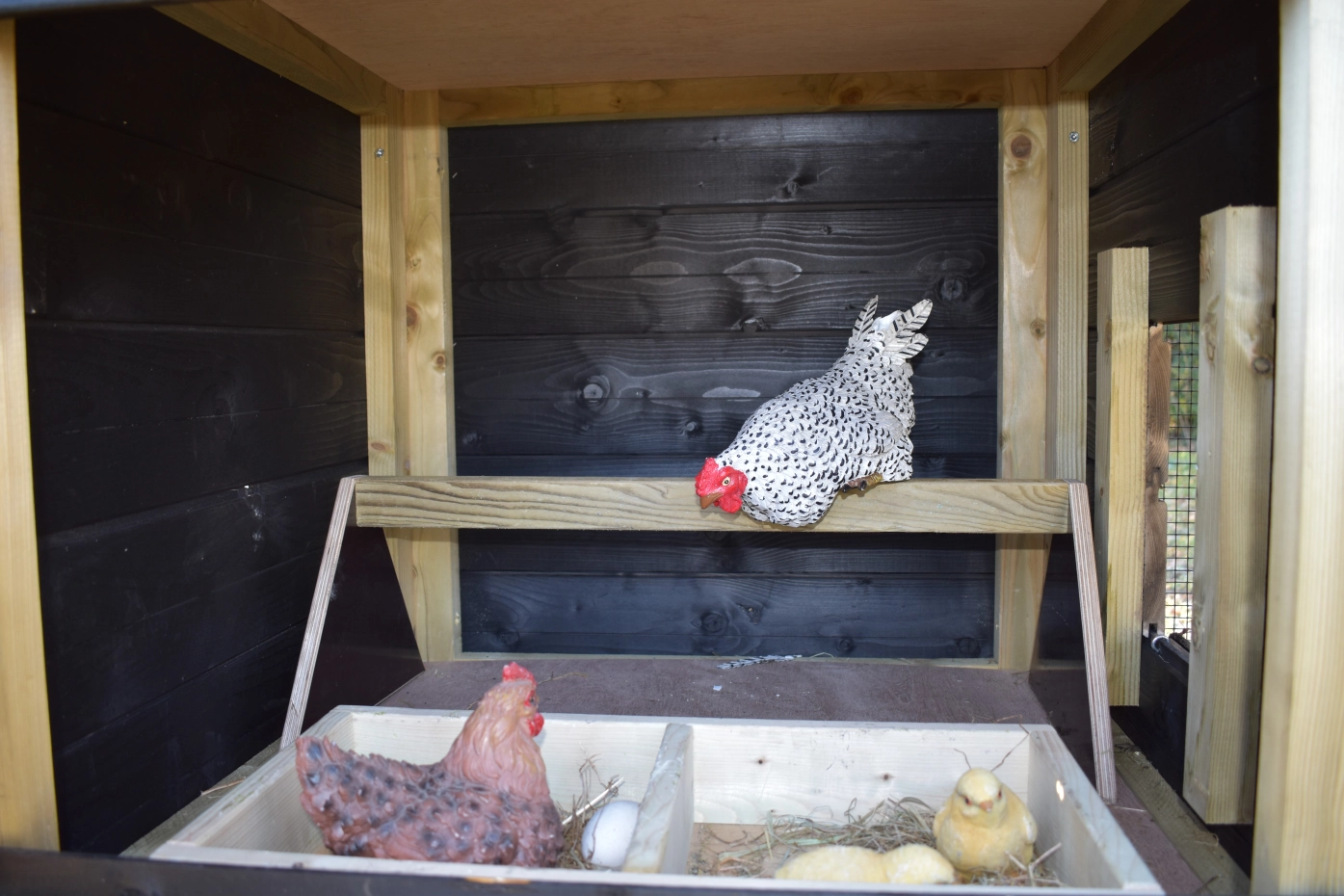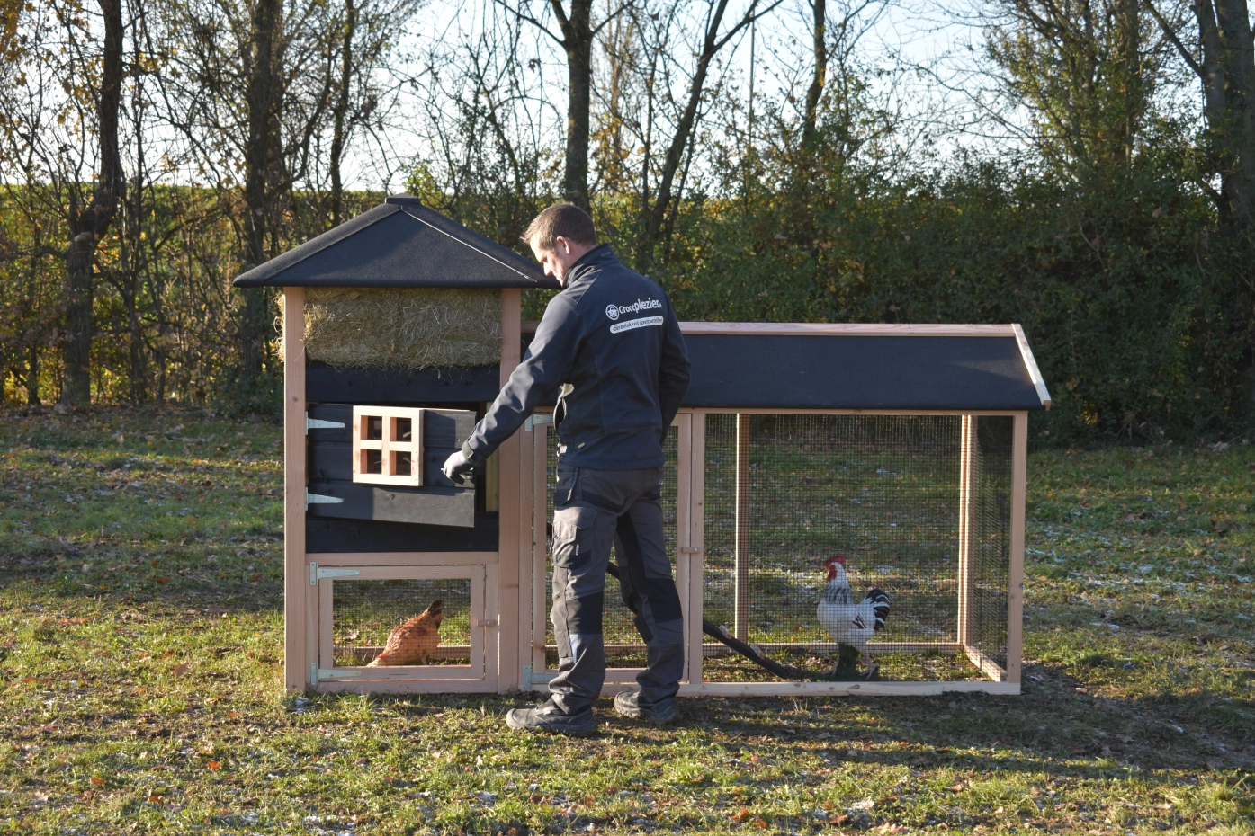- Dieser Hühnerstall ist mit Kunststofffüßen ausgestattet