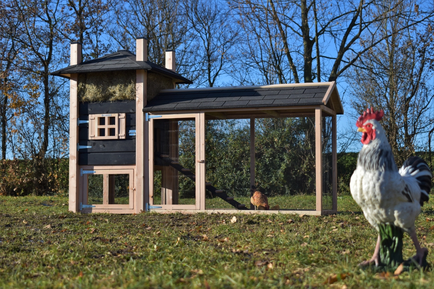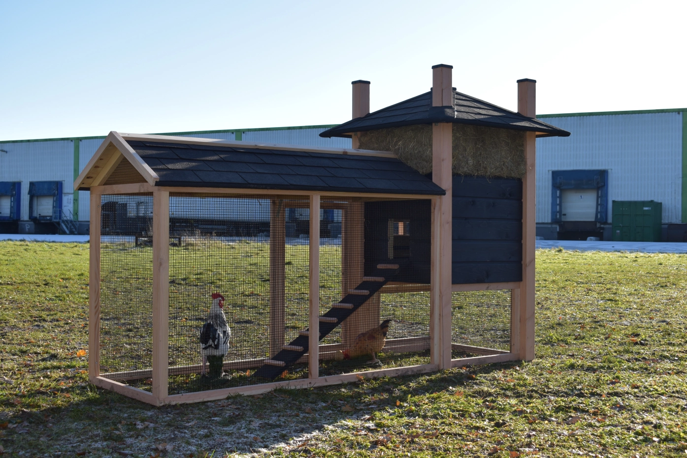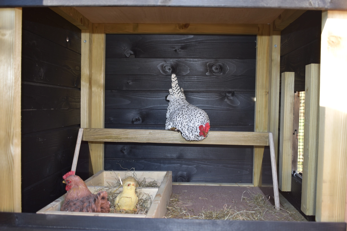- Dieser Hühnerstall ist mit Kunststofffüßen ausgestattet