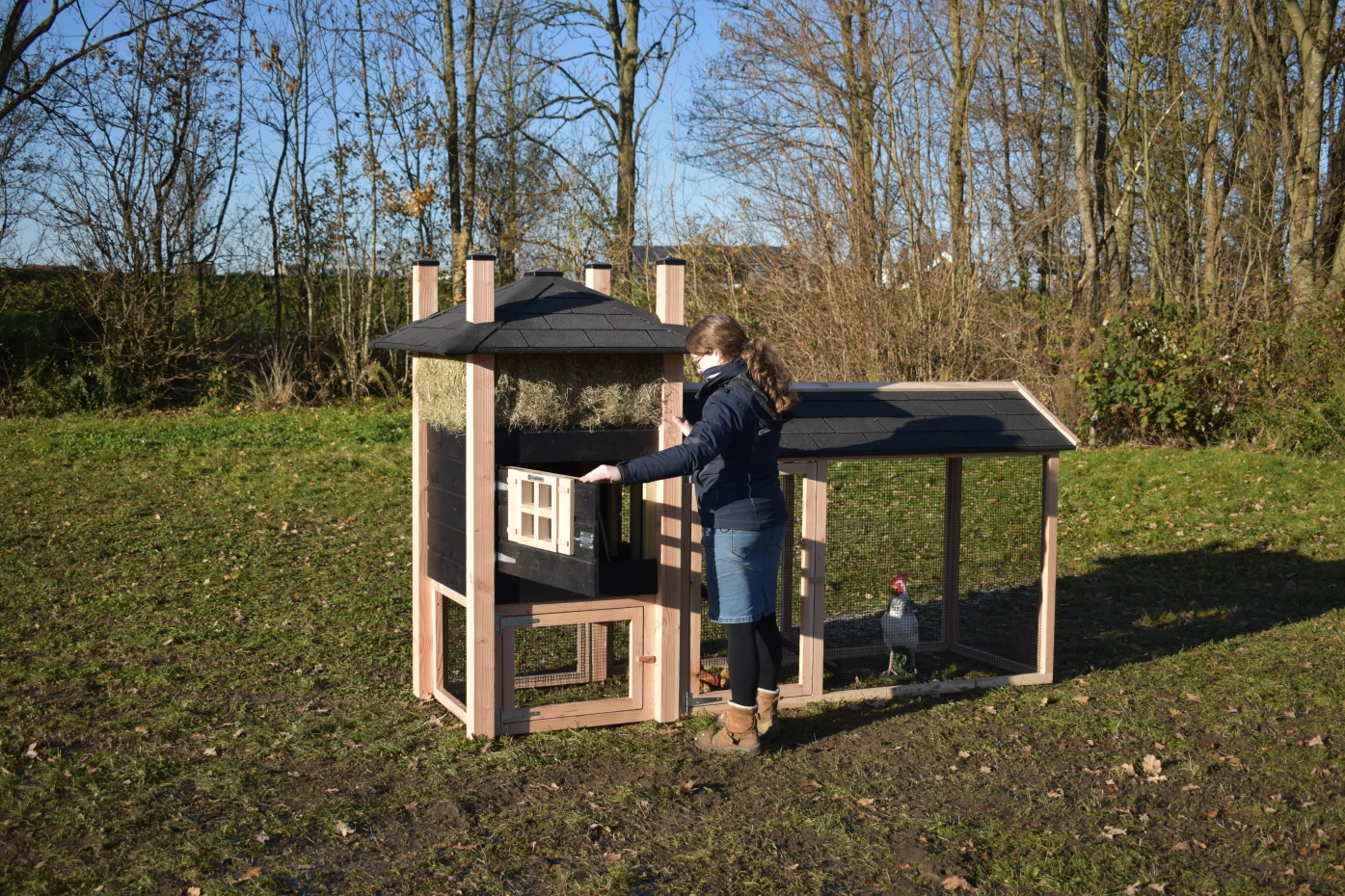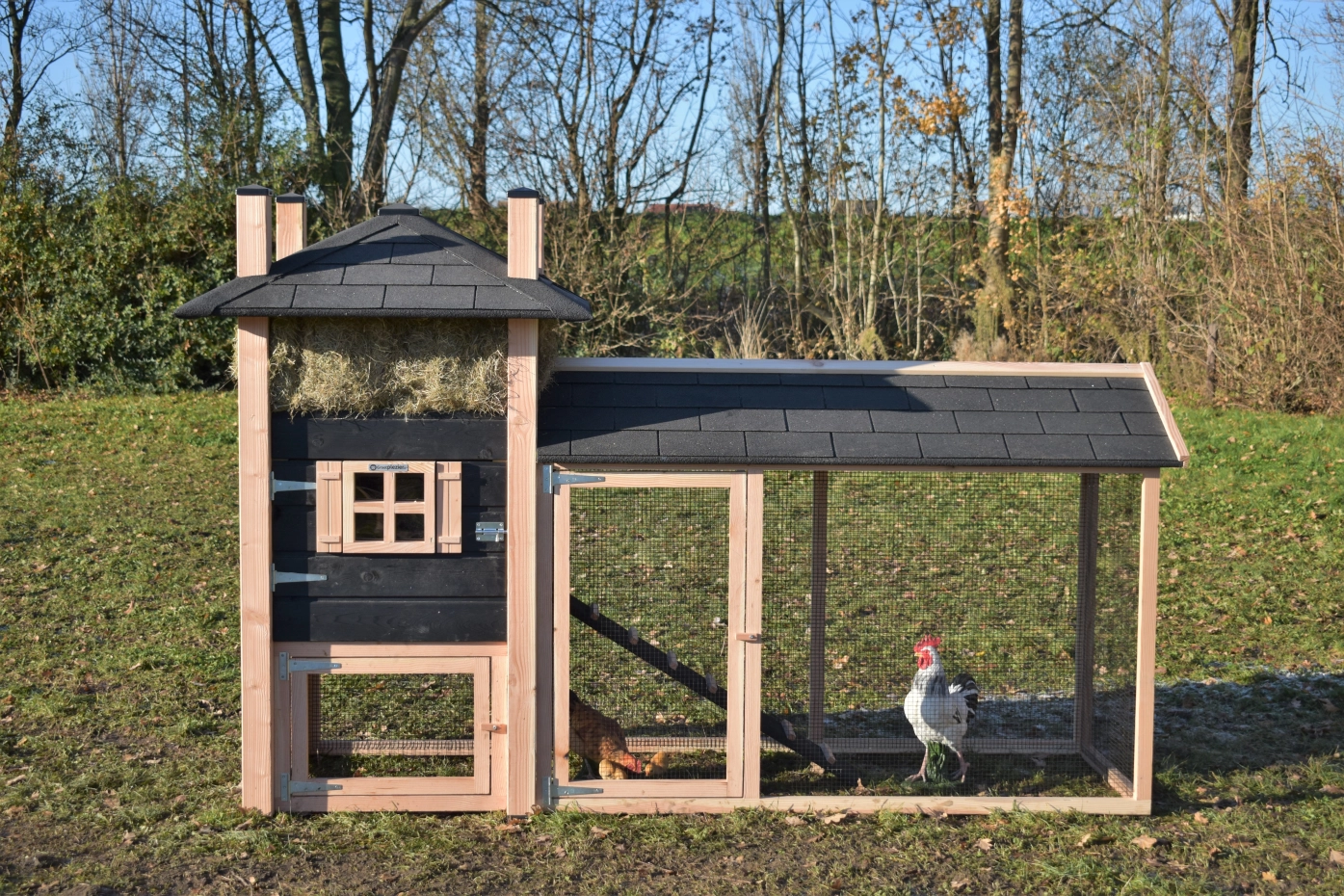 Auslauf mit Spitzdach · Douglasien/schwarz