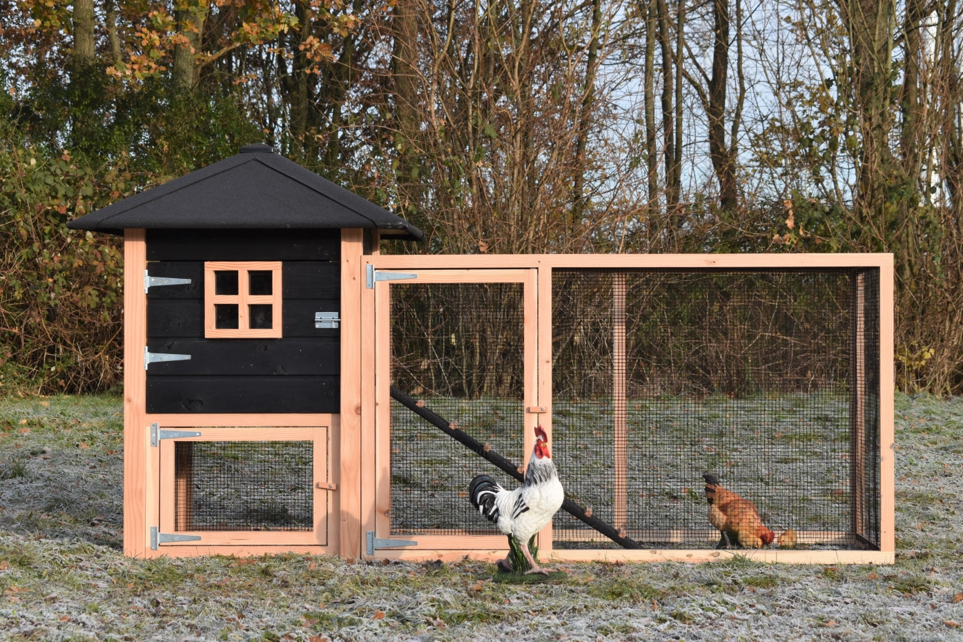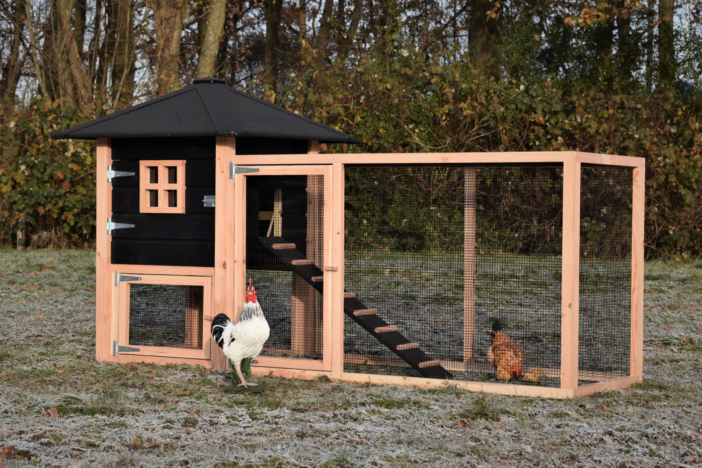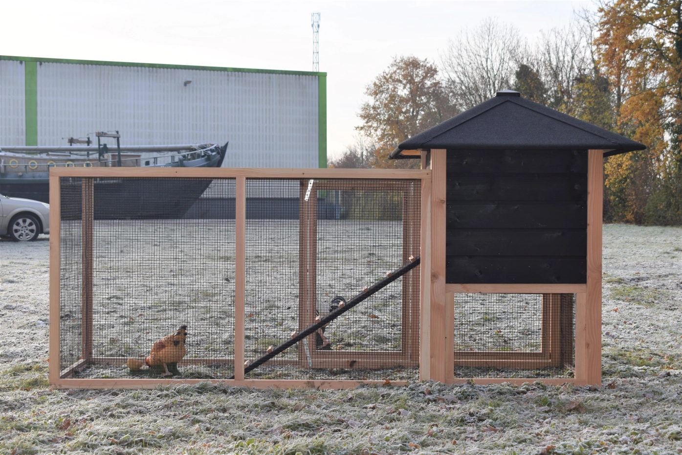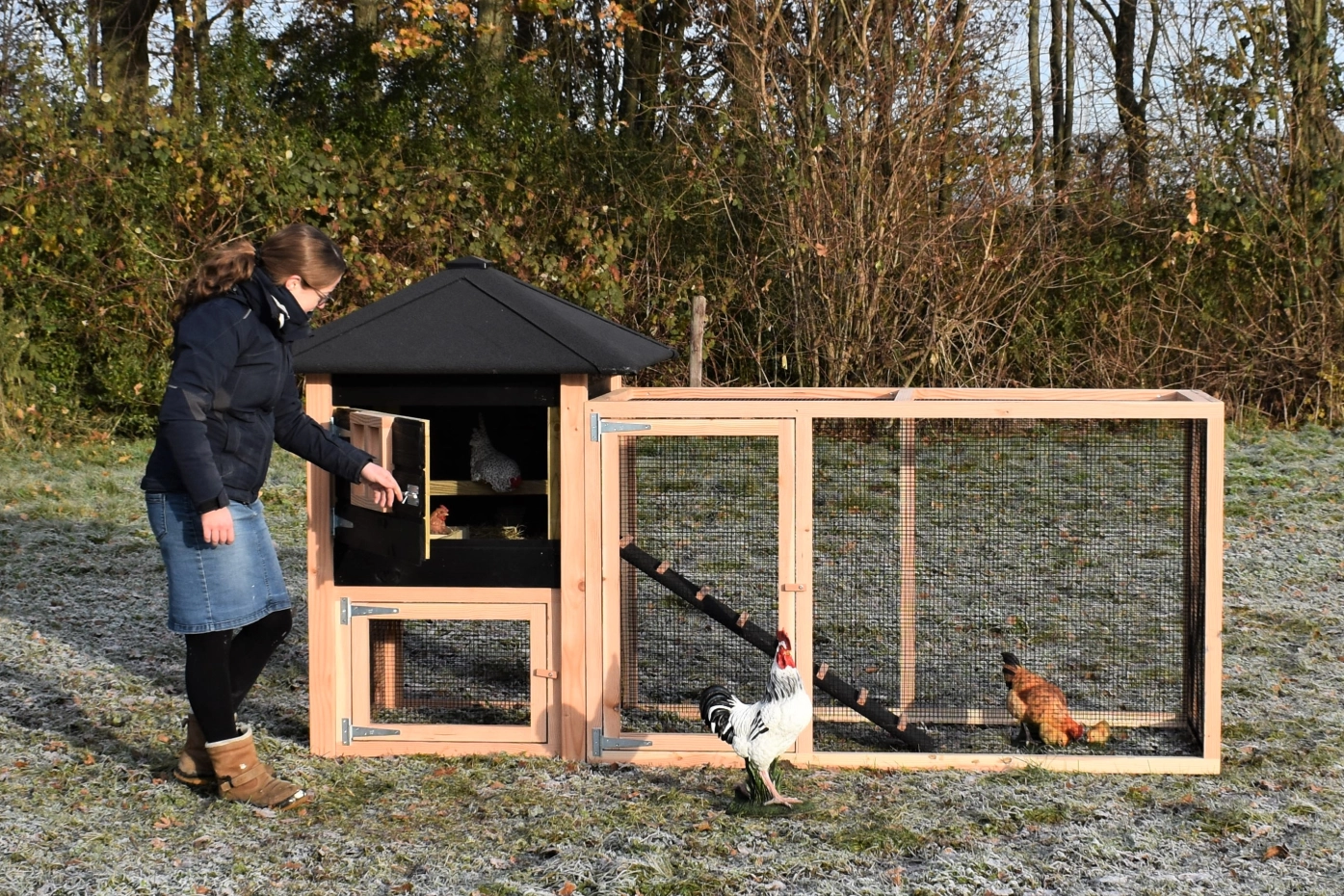 Der Hühnerstall Rosy mit Gitterdachauslauf ist eine tolle Kombination, die Ihren Hühnern einen Haüschen mit Stil bietet! Der geräumige Auslauf bietet Ihnen eine gute Sicht auf Ihre Hühner. Außerdem haben sie viel Platz zum Kratzen. Durch der große Tür können Sie der Schlafraum leicht reinigen. Ein schöne Stall für einem guten Preise!