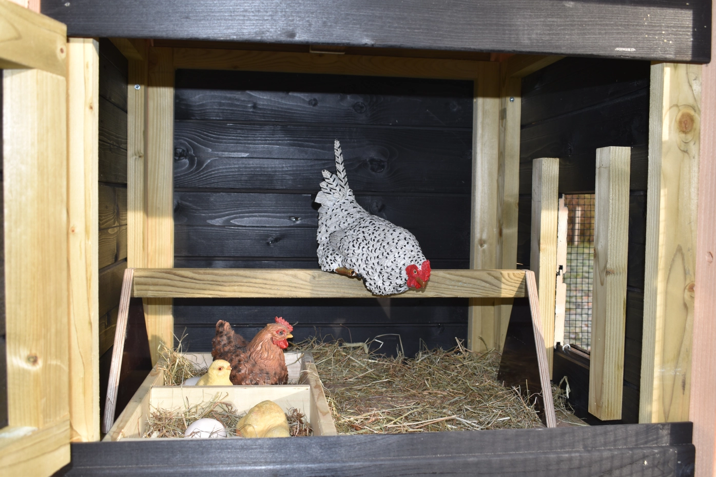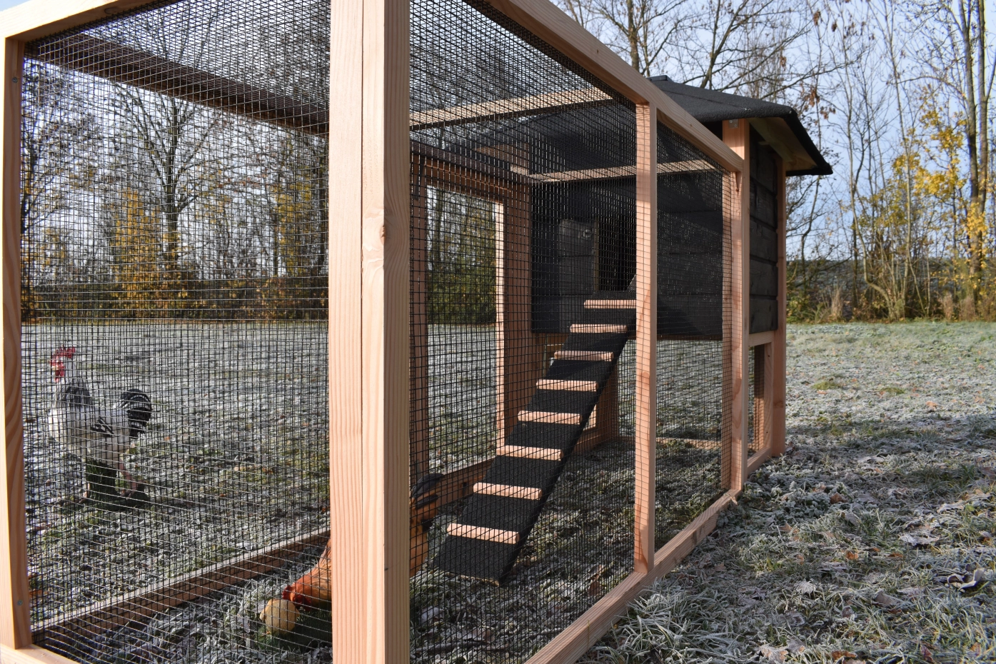 - Dieser Hühnerstall ist mit Kunststofffüßen ausgestattet