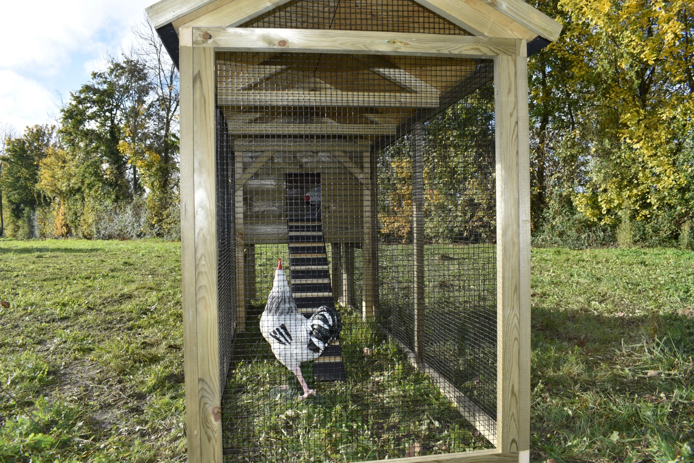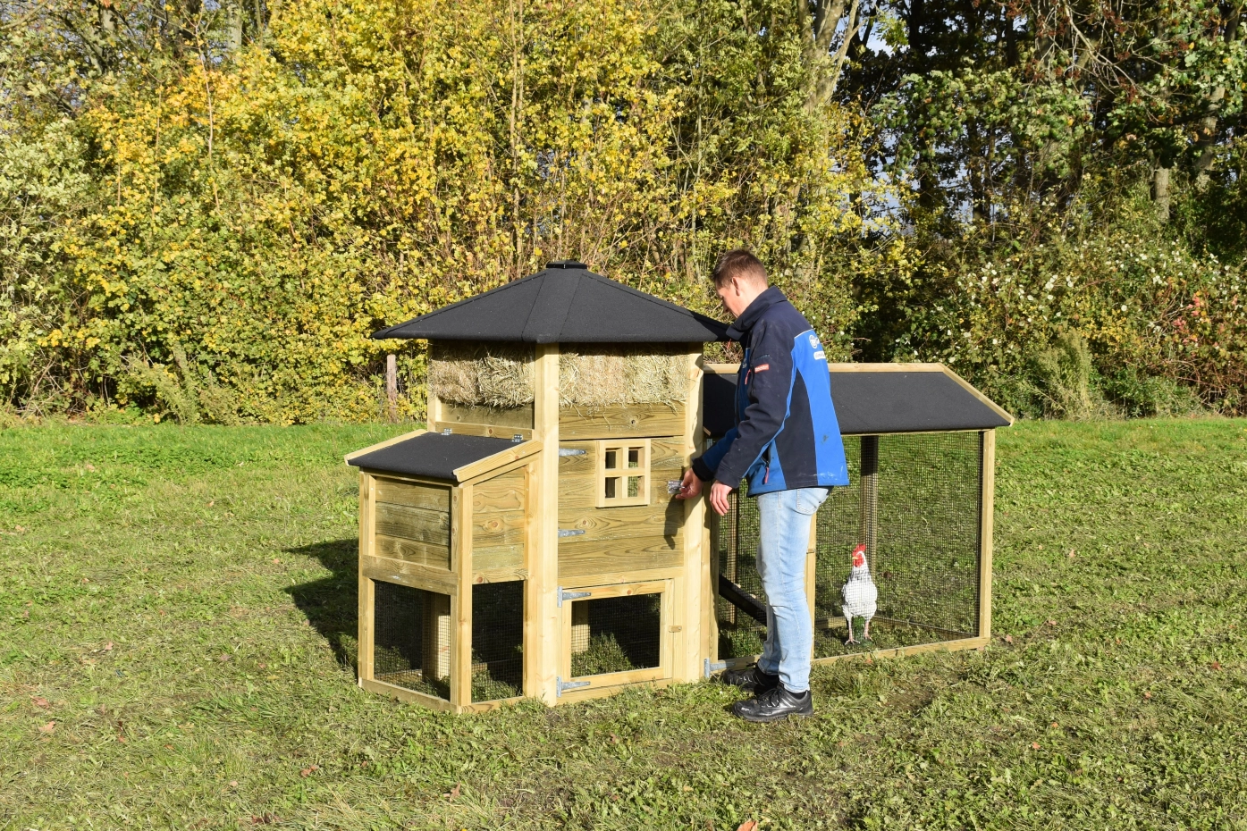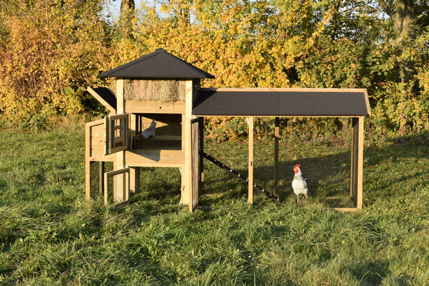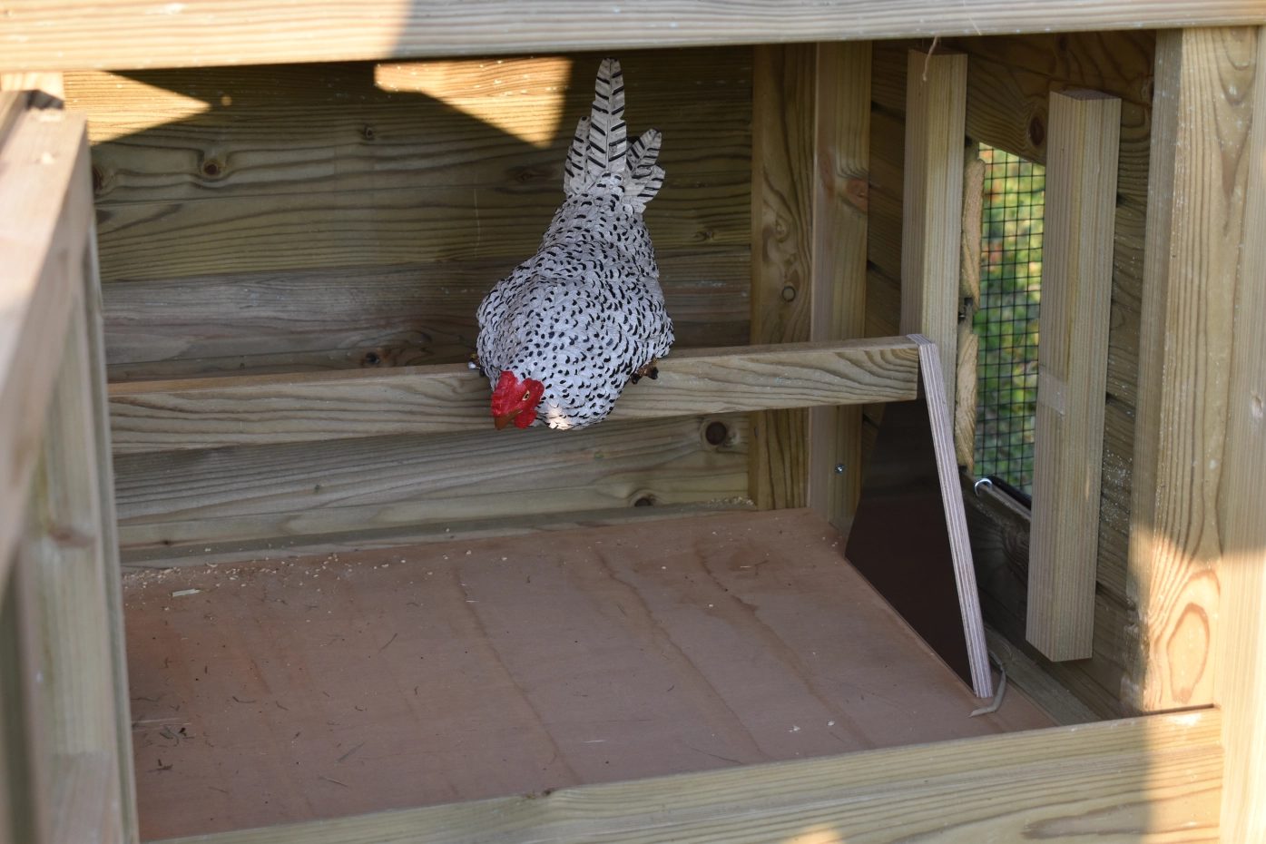 - Dieser Hühnerstall ist mit einem Legenest ausgestattet.