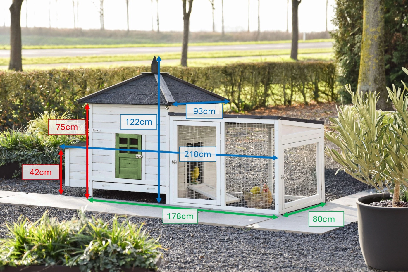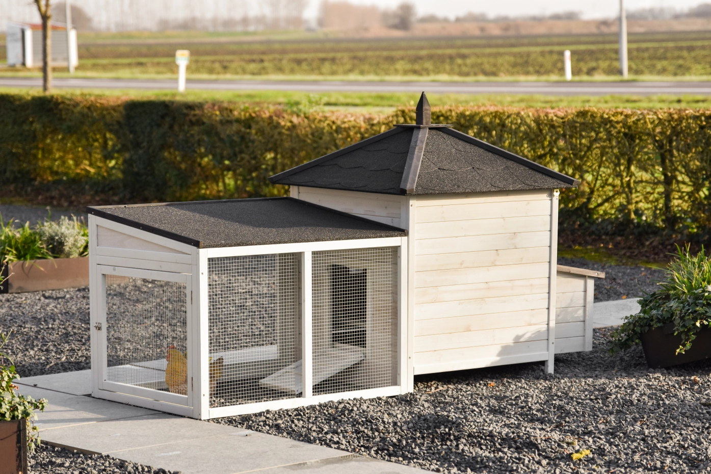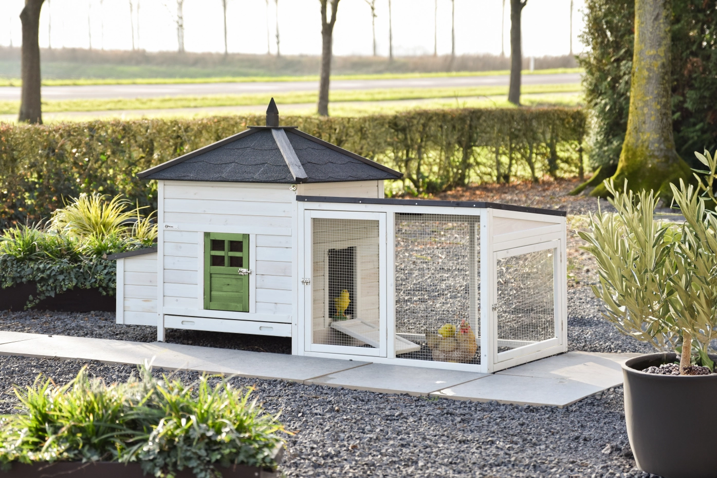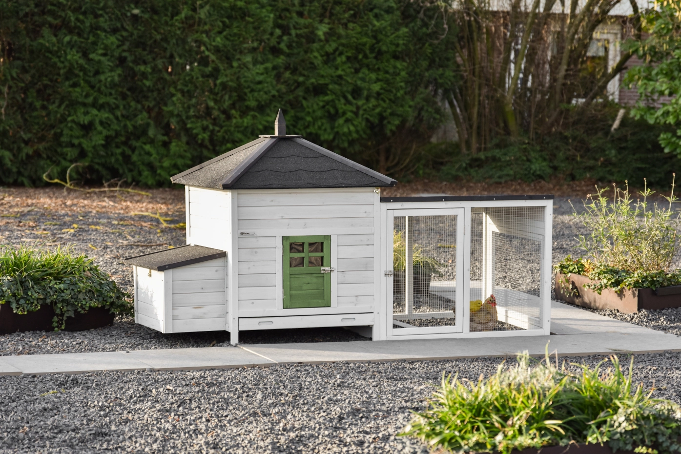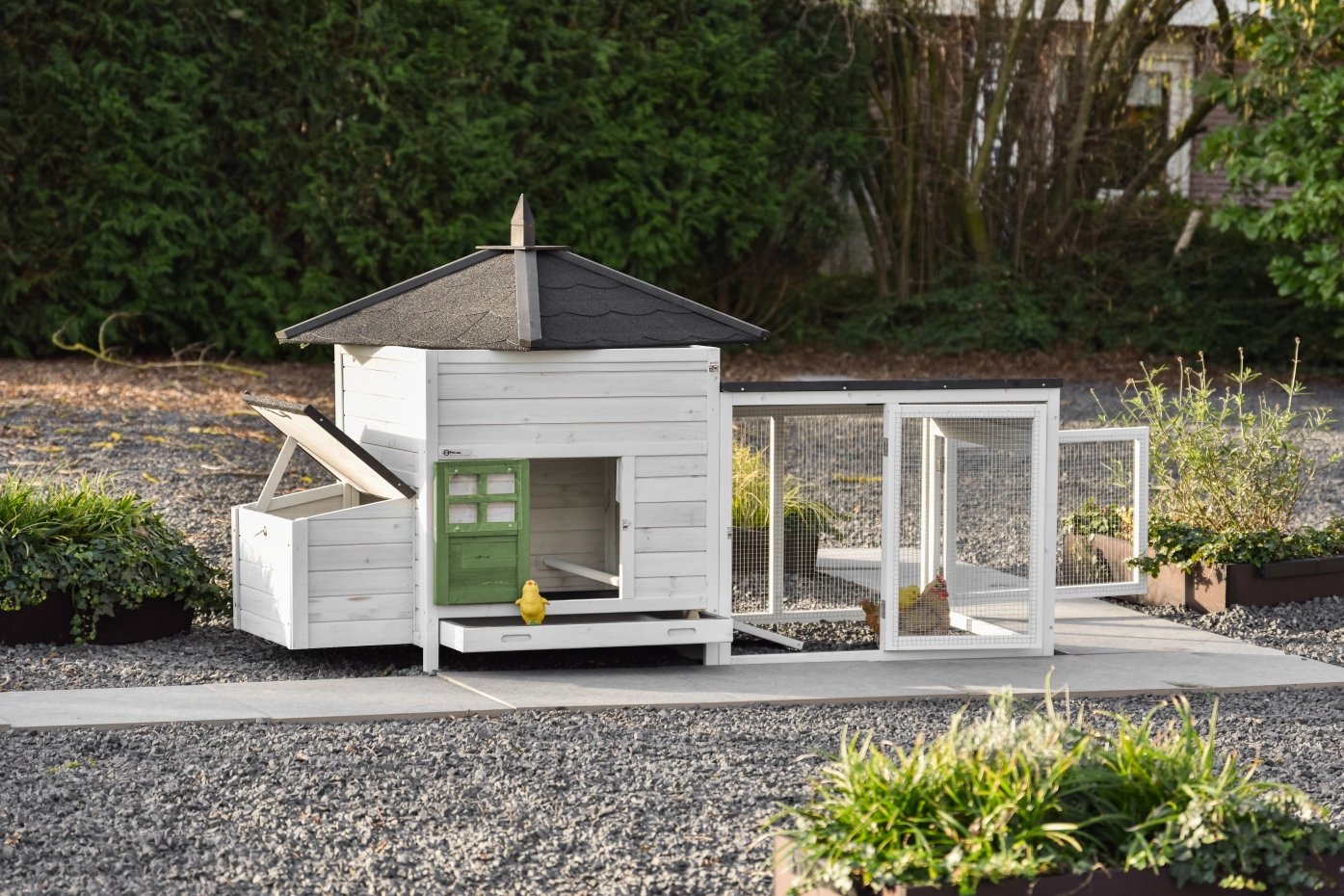 Dieses wunderschöne Hühnerstall Ambiance Large ist bis ins kleinste Detail durchdacht! Es verfügt über eine praktische, ausziehbare Schublade und ein abnehmbares Dach. Das Hühnerhaus Ambiance Large bietet schöne und nützliche Details sowie einen praktischen Auslauf, der beliebig erweiterbar ist. Dieses Modul passt in die meisten Gärten, und das Nachthaus ist für 4-6 Hühner geeignet, abhängig von der Rassengröße.