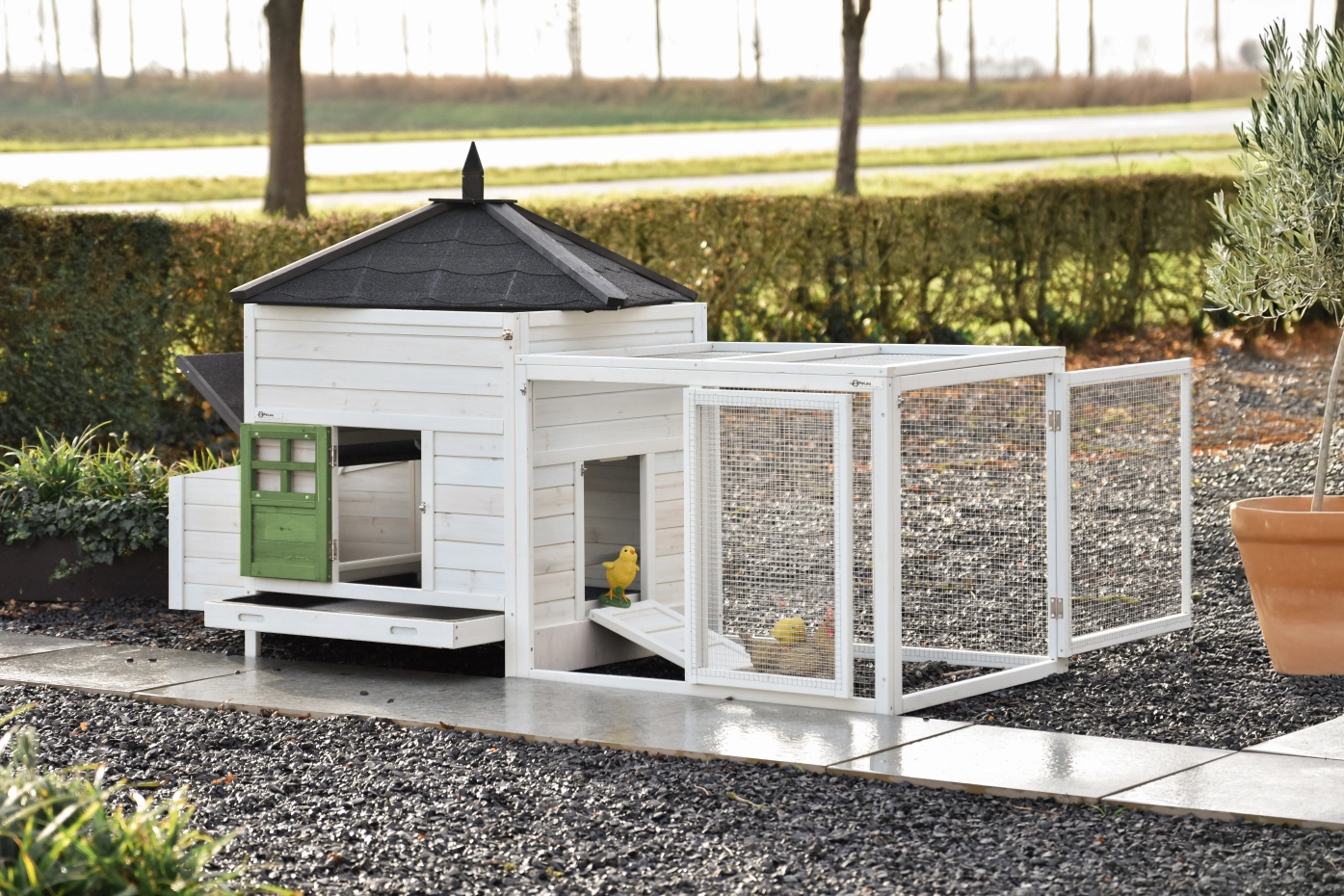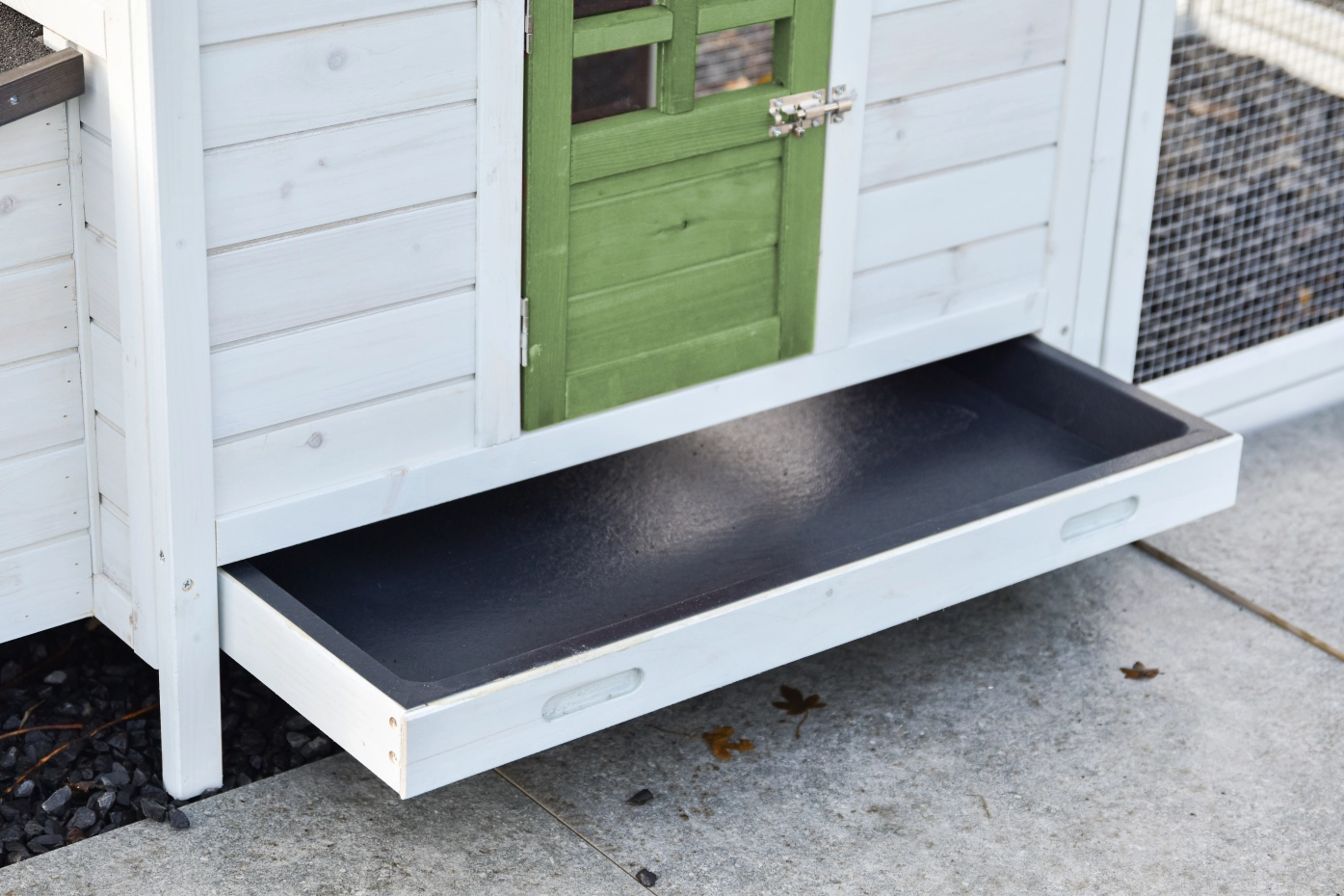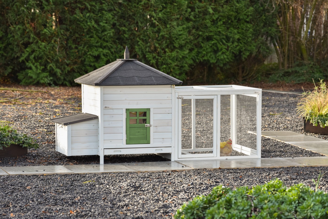 Dieses wunderschöne Hühnerstall Ambiance Large ist bis ins kleinste Detail durchdacht! Es verfügt über eine praktische, ausziehbare Schublade und ein abnehmbares Dach. Das Hühnerhaus Ambiance Large bietet schöne und nützliche Details sowie einen praktischen Auslauf, der beliebig erweiterbar ist. Dieses Modul passt in die meisten Gärten, und das Nachthaus ist für 4-6 Hühner geeignet, abhängig von der Rassengröße.