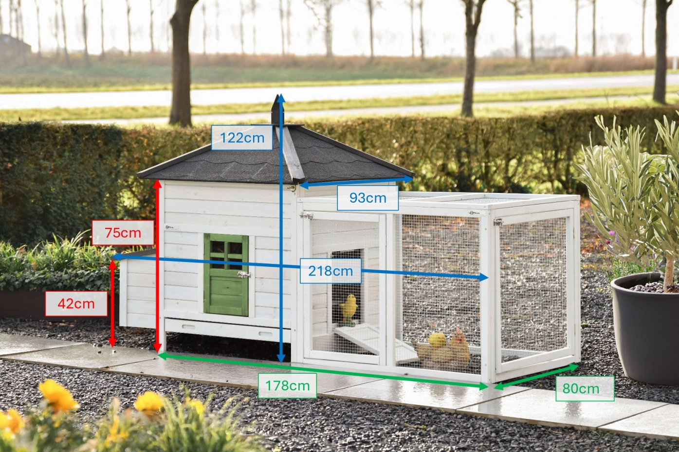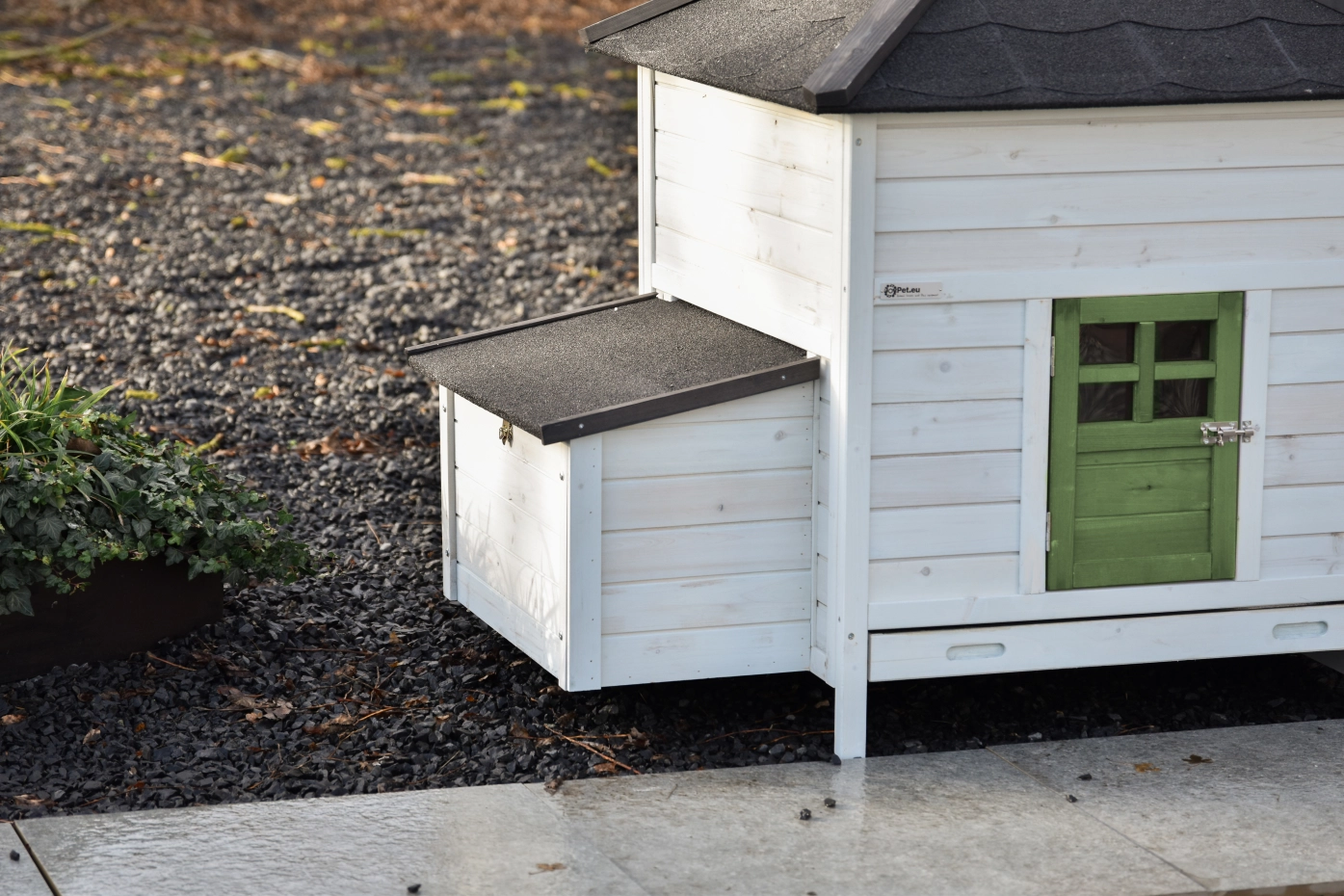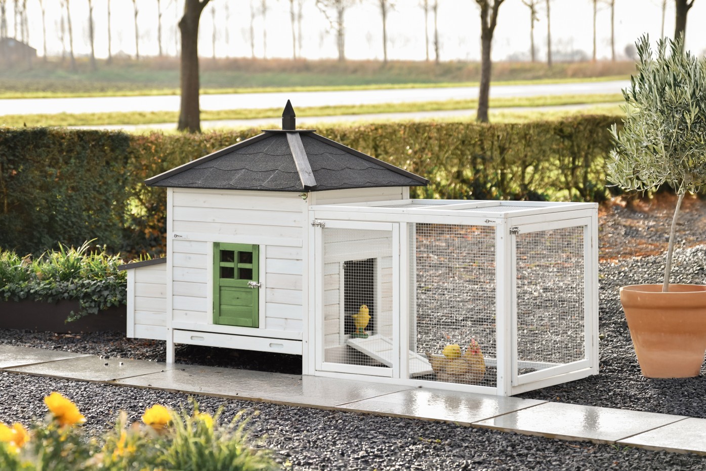 Dieses wunderschöne Hühnerstall Ambiance Large ist bis ins kleinste Detail durchdacht! Es verfügt über eine praktische, ausziehbare Schublade und ein abnehmbares Dach. Das Hühnerhaus Ambiance Large bietet schöne und nützliche Details sowie einen praktischen Auslauf, der beliebig erweiterbar ist. Dieses Modul passt in die meisten Gärten, und das Nachthaus ist für 4-6 Hühner geeignet, abhängig von der Rassengröße.
