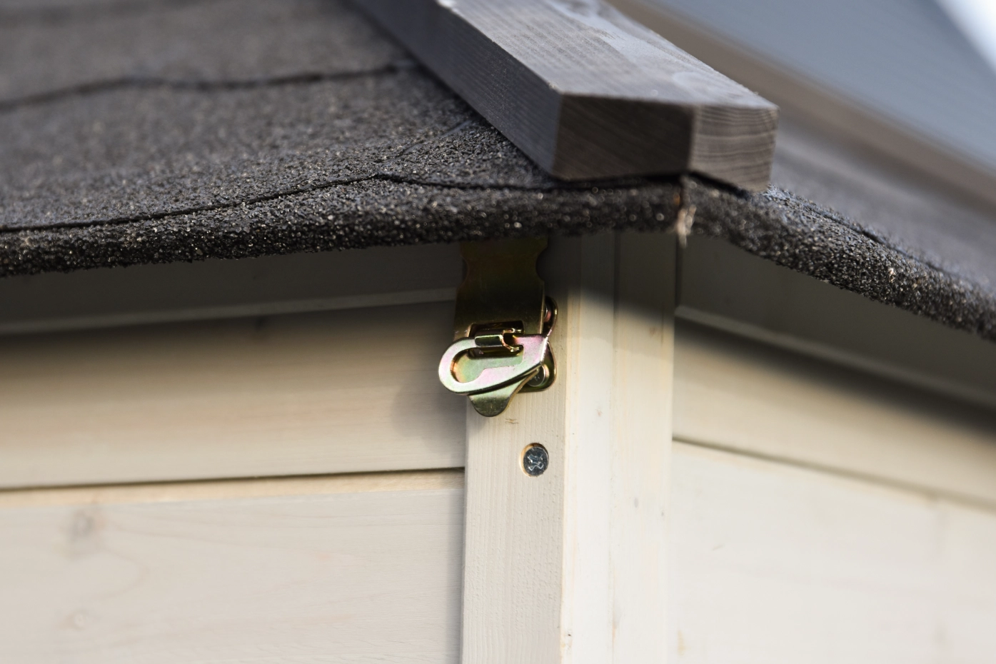 - Steht der Stall nicht auf einem geschützten Platz, empfehlen wir Ihnen, den Stall zu verankern.