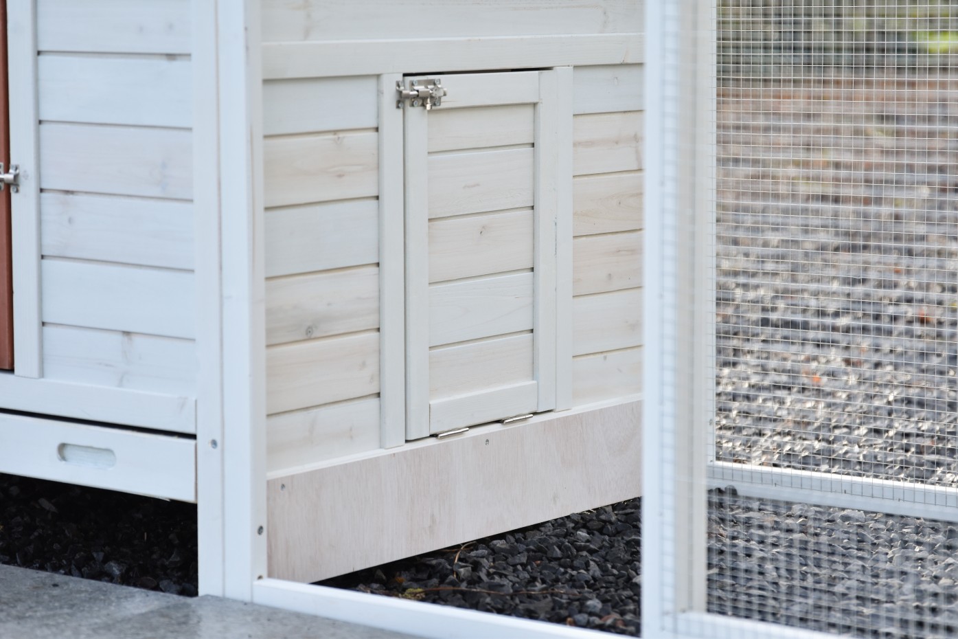 Dieses wunderschöne Hühnerstall Ambiance Large ist bis ins kleinste Detail durchdacht! Es verfügt über eine praktische, ausziehbare Schublade und ein abnehmbares Dach. Das Hühnerhaus Ambiance Large bietet schöne und nützliche Details sowie einen praktischen Auslauf, der beliebig erweiterbar ist. Dieses Modul passt in die meisten Gärten, und das Nachthaus ist für 4-6 Hühner geeignet, abhängig von der Rassengröße.