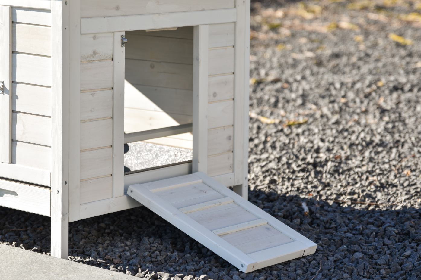 - Wenn möglich stellen Sie den Stall auf einem geschützten Platz.