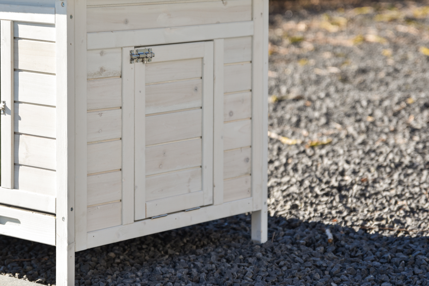 Zur Vermeidung von Rost- und Korrosionsbildung empfiehlt es sich, Schlösser und Beschläge regelmäßig mit Silikonspray oder Schlösserspray zu behandeln. Steht die Tierunterkunft nicht an einem geschützten Ort, empfehlen wir Ihnen, die Tierunterkunft zu verankern.