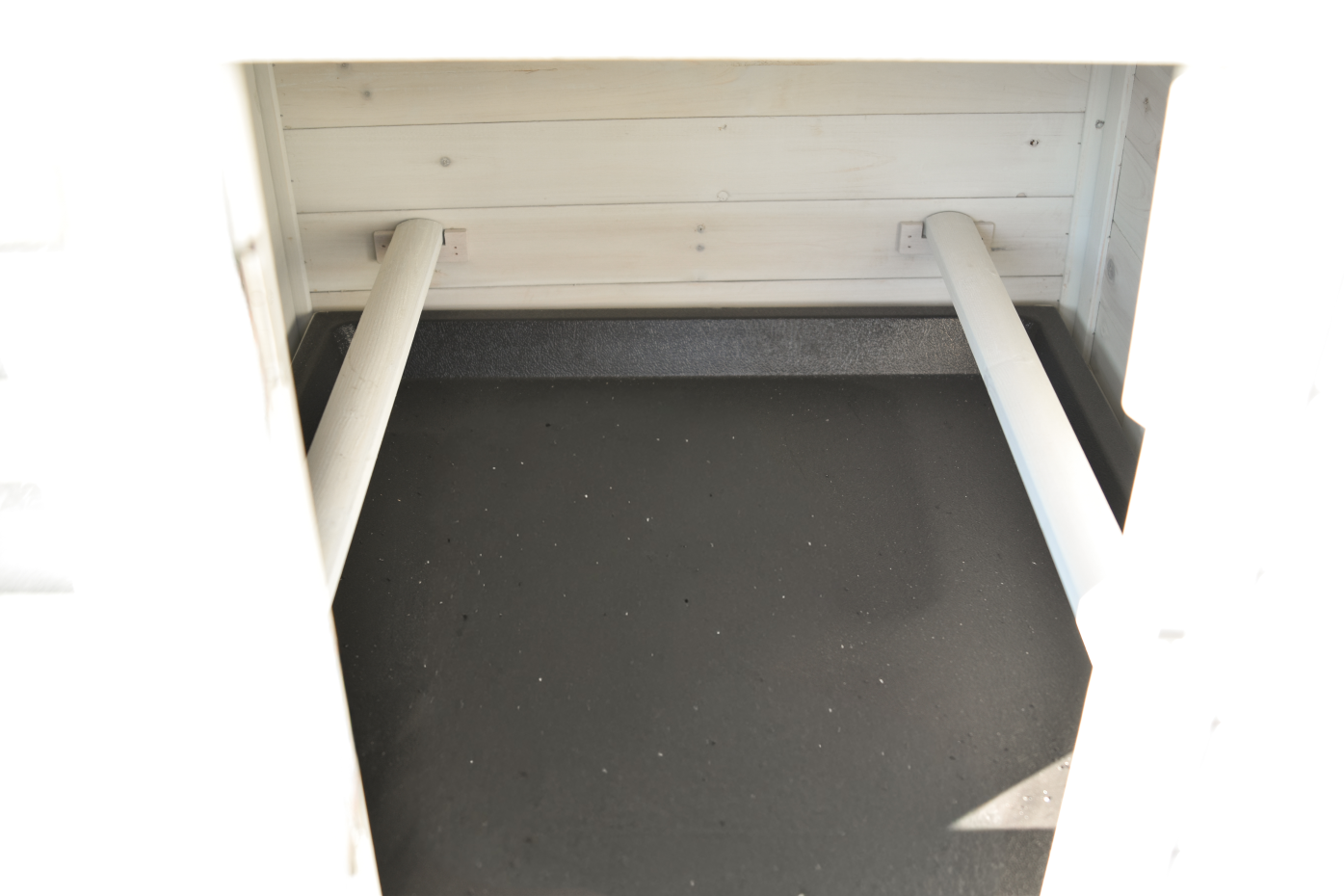 - Das Dach dieses Außengeheges ist mit Dachpappe versehen