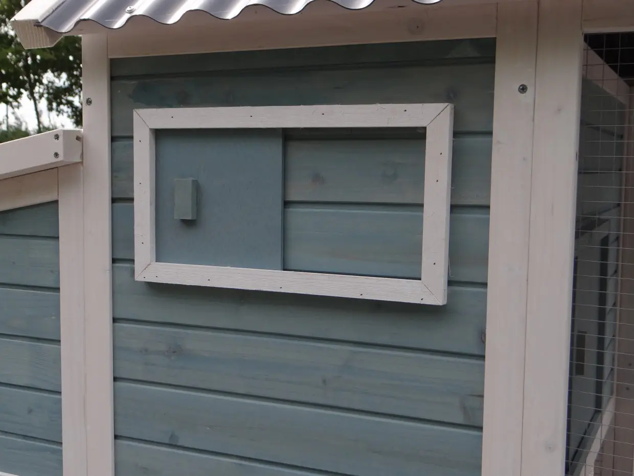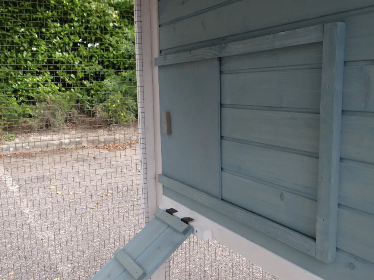 • Dieser Hühnerstall ist mit einem Legenest ausgestattet.
