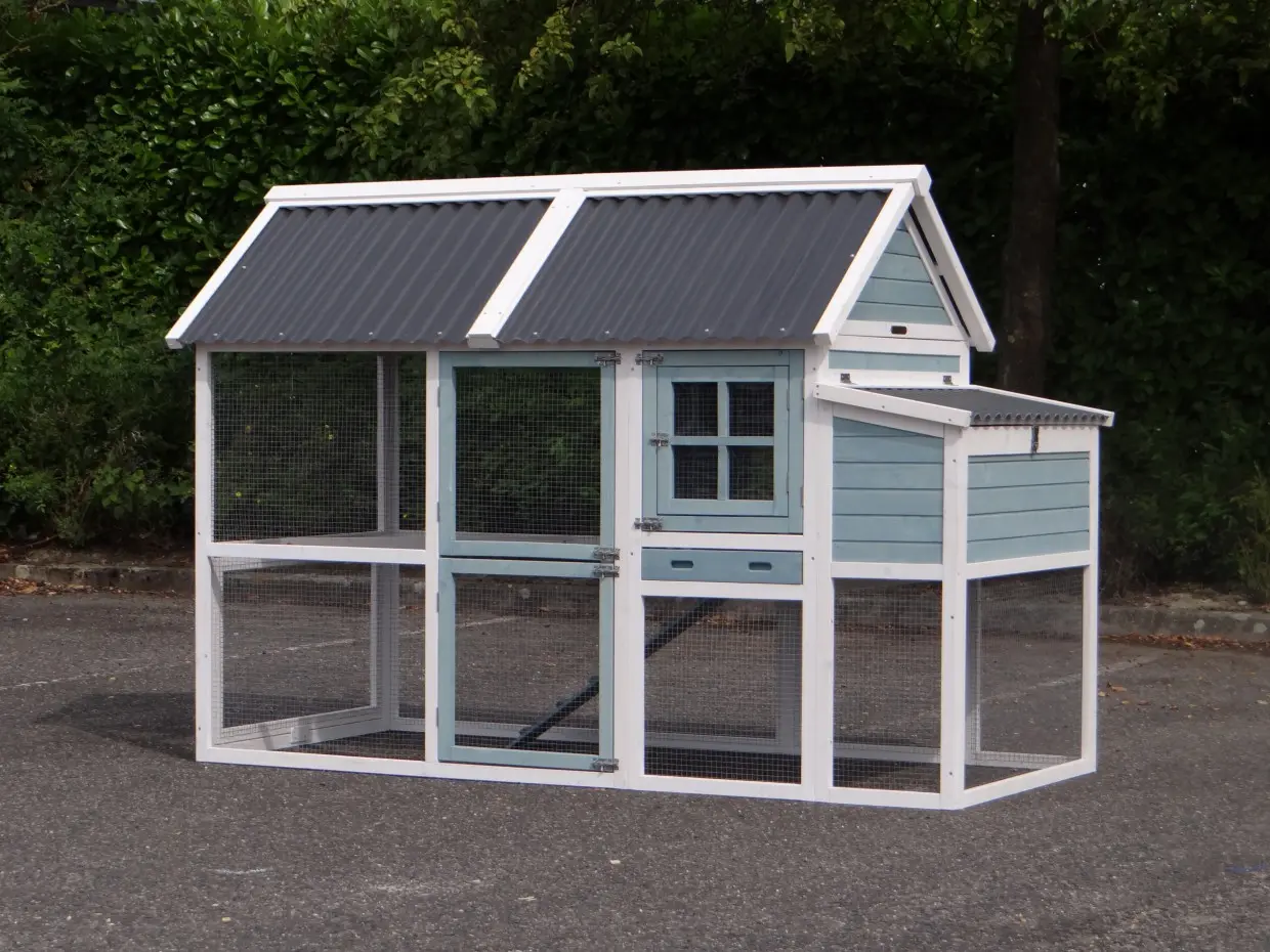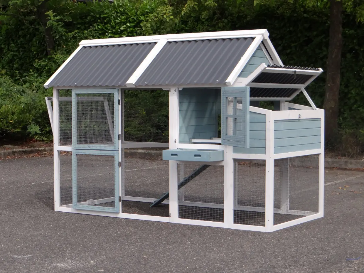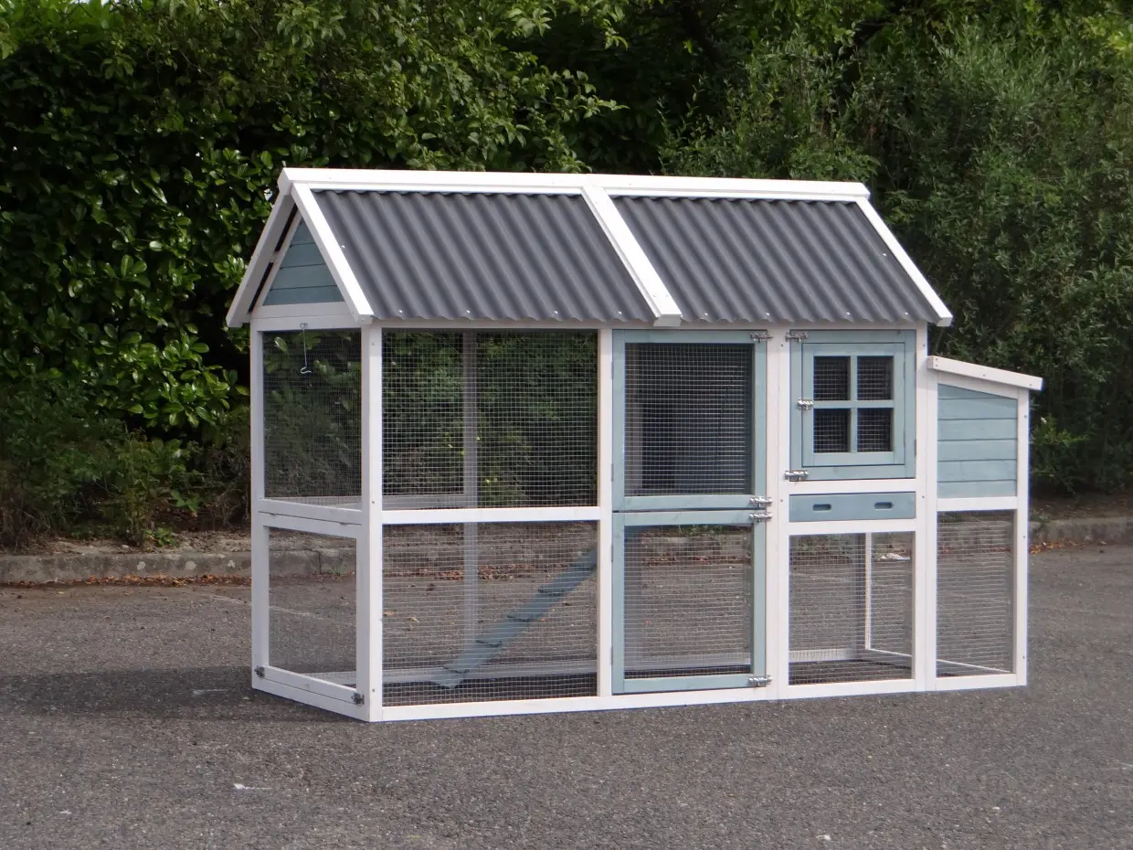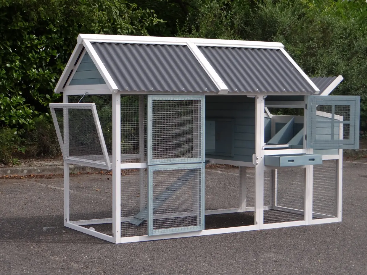 Das Hühnerhaus Ariane ist ein komplett überdachtes Hühnerhaus mit Auslaufgehege in den neuesten Farben. Dieses Häuschen für Ihre Hühner ist mit einem Kunststoffdach ausgestattet und somit besonders langlebig!