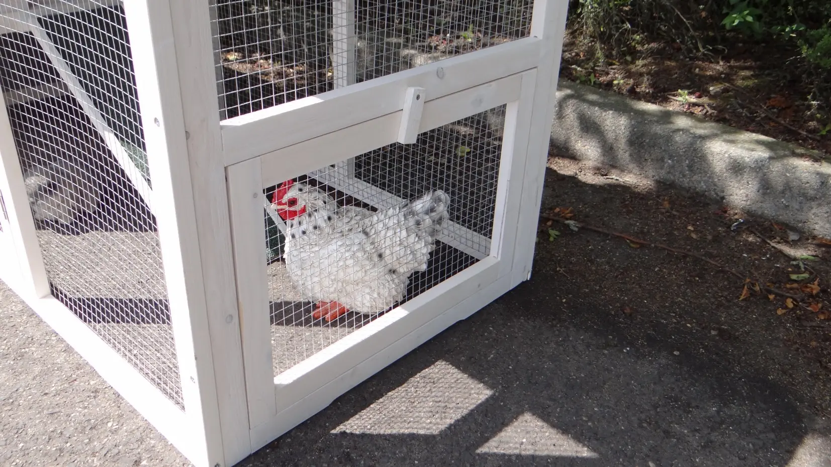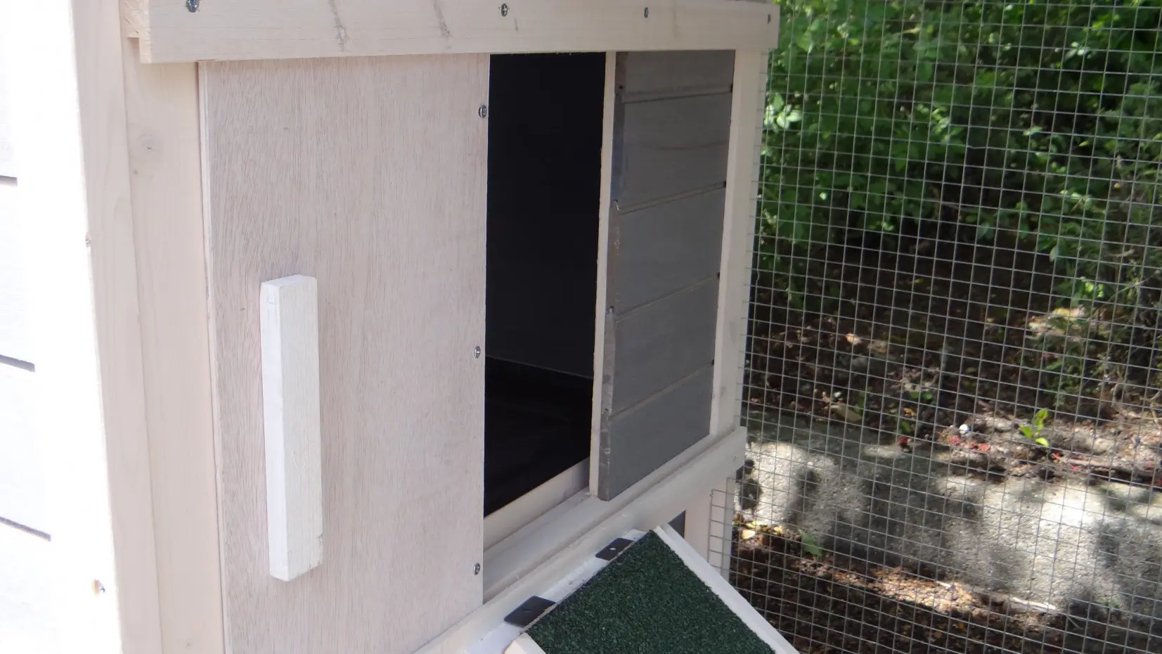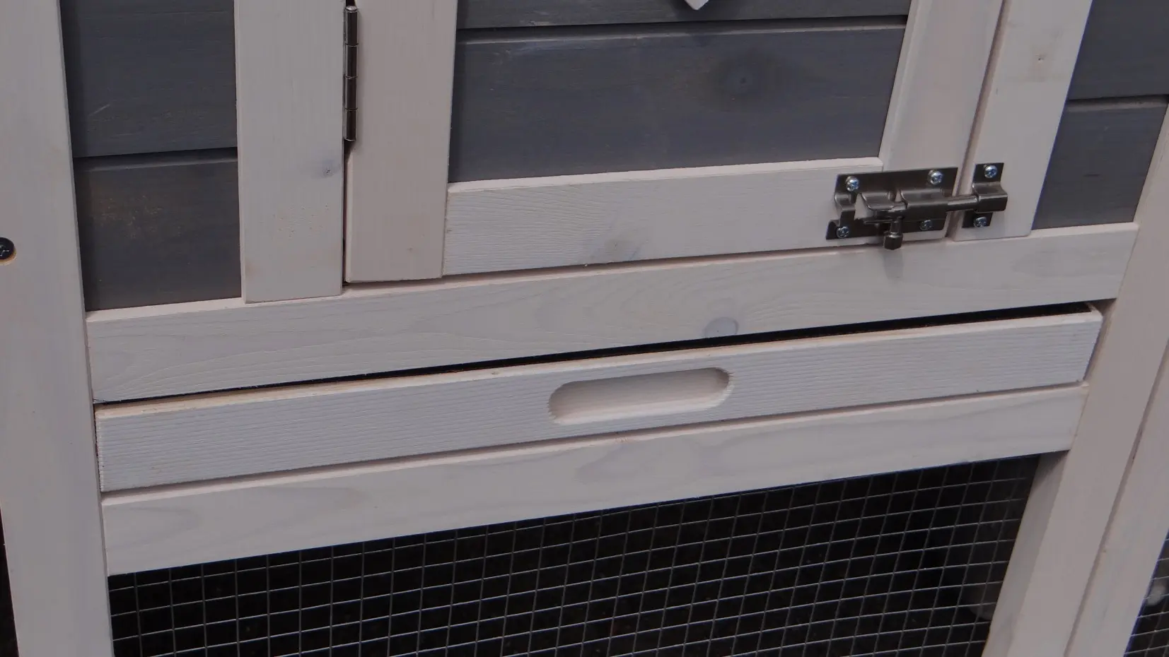 - Die Türen dieses Kaninchenstalls sind mit doppelten Schieberiegeln ausgestattet