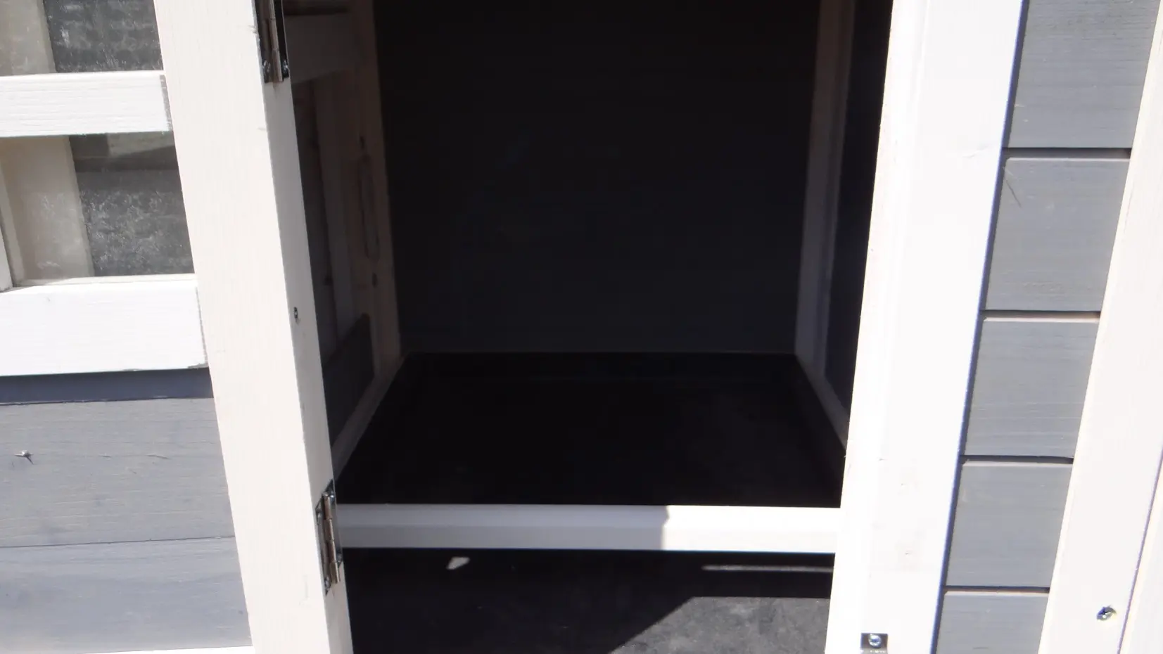 Der Hühnerstall Budget verfügt über großzügige Türen und eine herausziehbare Kotwanne im Schlafbereich, sodass der Stall optimal sauber gehalten werden kann.