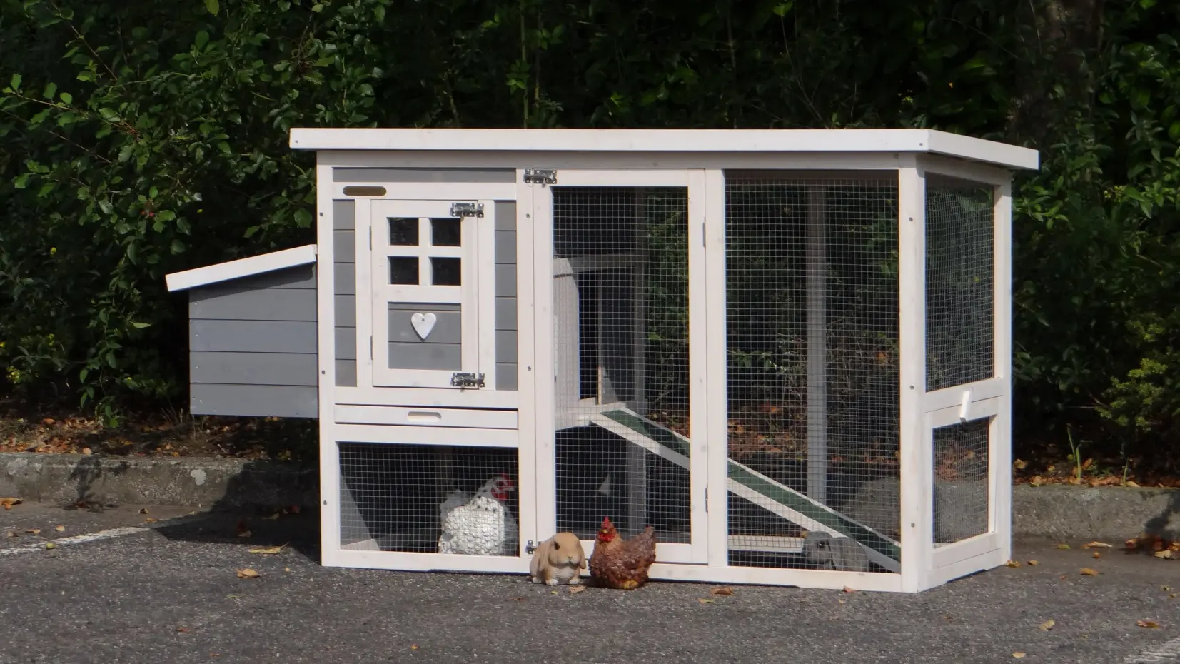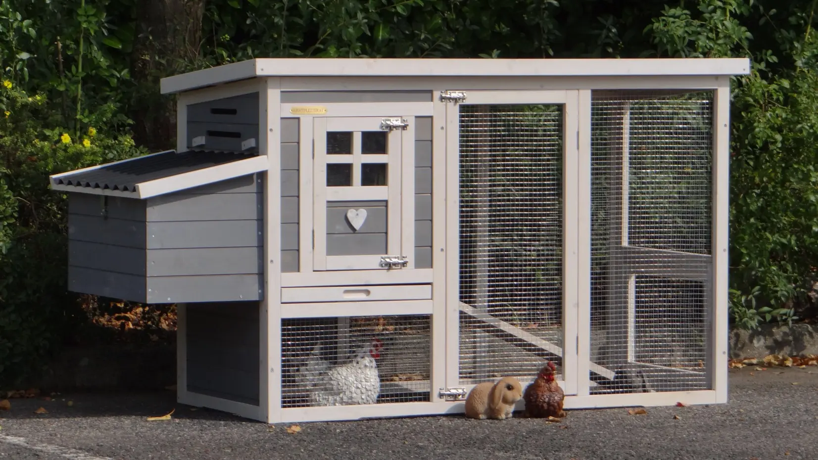 - Das Dach dieses Kaninchenstalls ist von Kunststof.