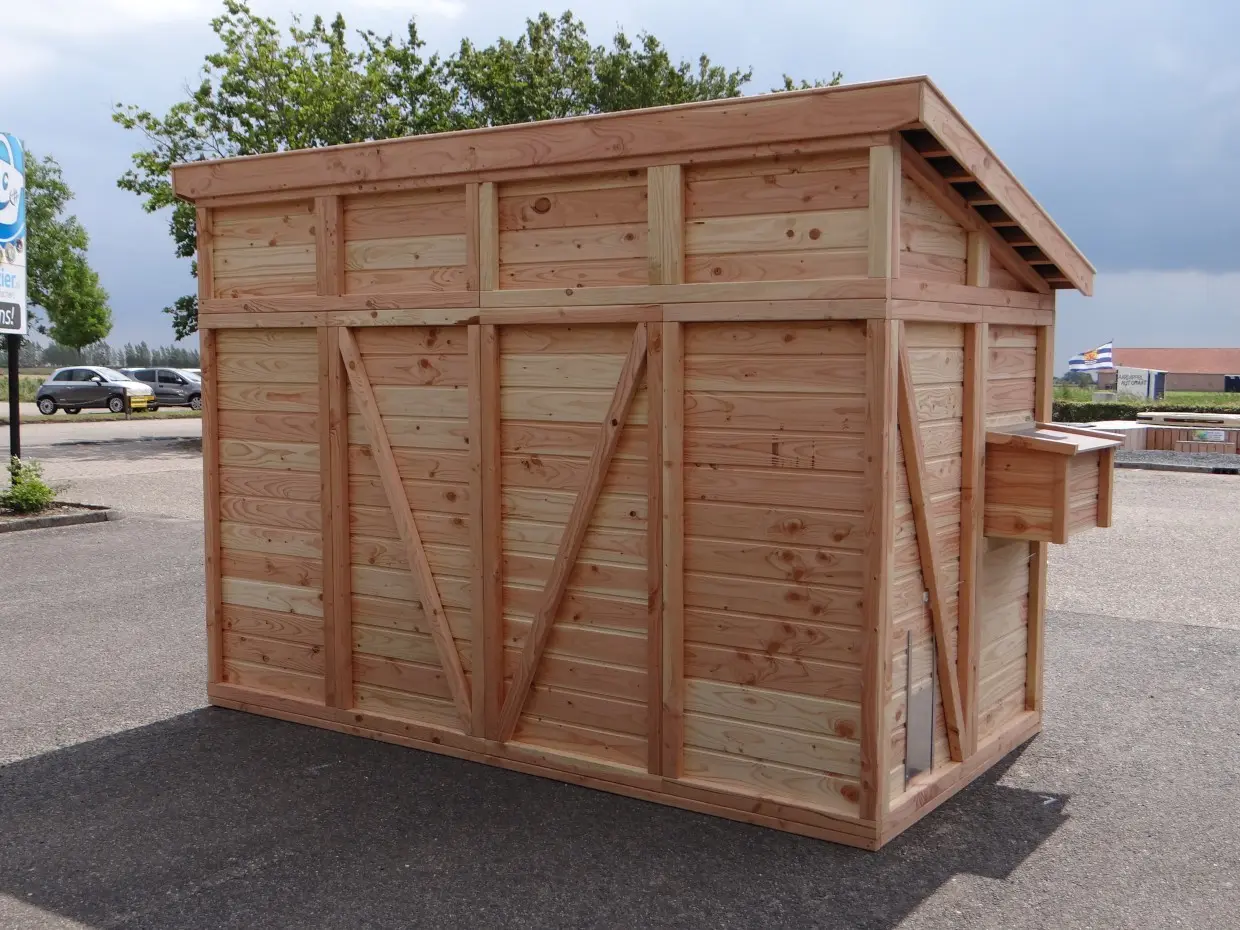 - Herstellt aus Douglasienholz. Rahmen sind 68x44mm, Bretter sind 18mm dicke. Dieses Douglasienholz hat eine lebensdauer von +/- 15 Jahre. Behandlung gegen Holzfäule nicht notwendig, aber dann wird das Holz schnell grau werden.