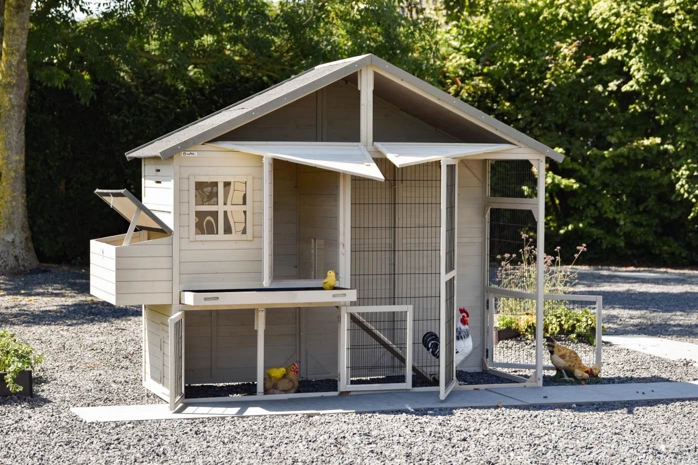 Das Hühnerhaus Holiday Large kann ganz einfach mit einem passenden Anbaugehege erweitert werden.
