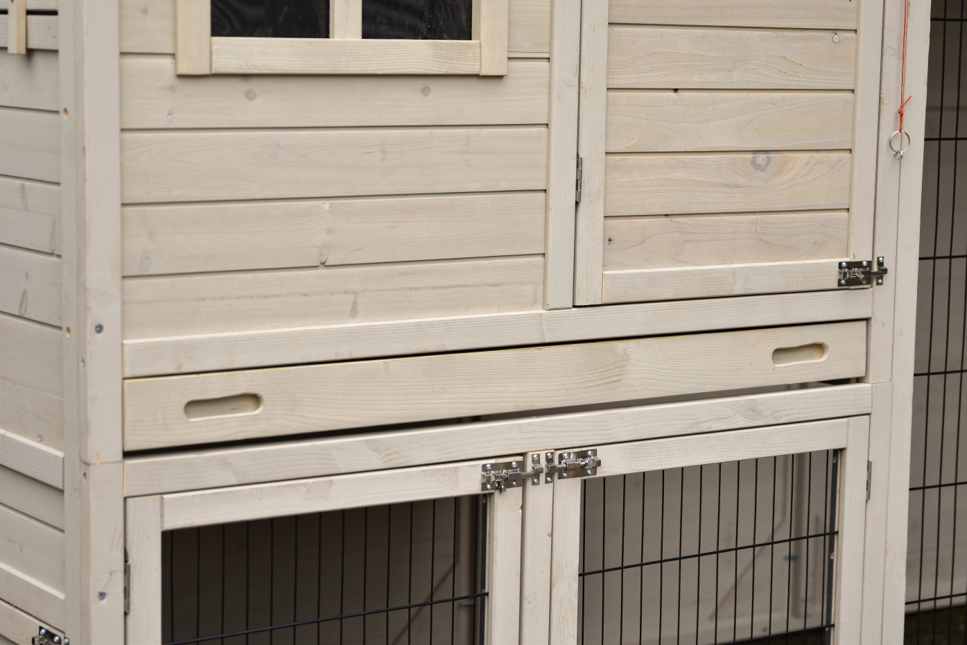- Die Türen dieses Kaninchenstalls sind mit doppelten Schieberiegeln ausgestattet