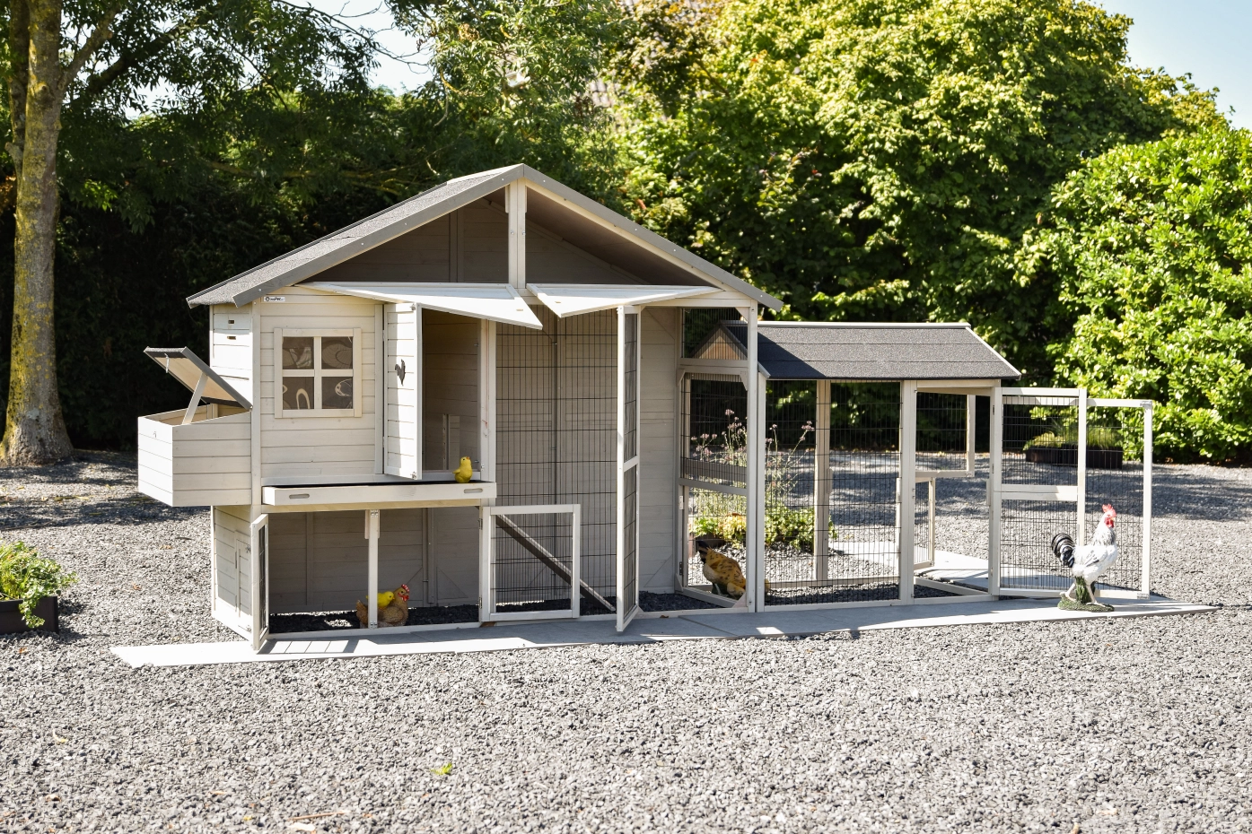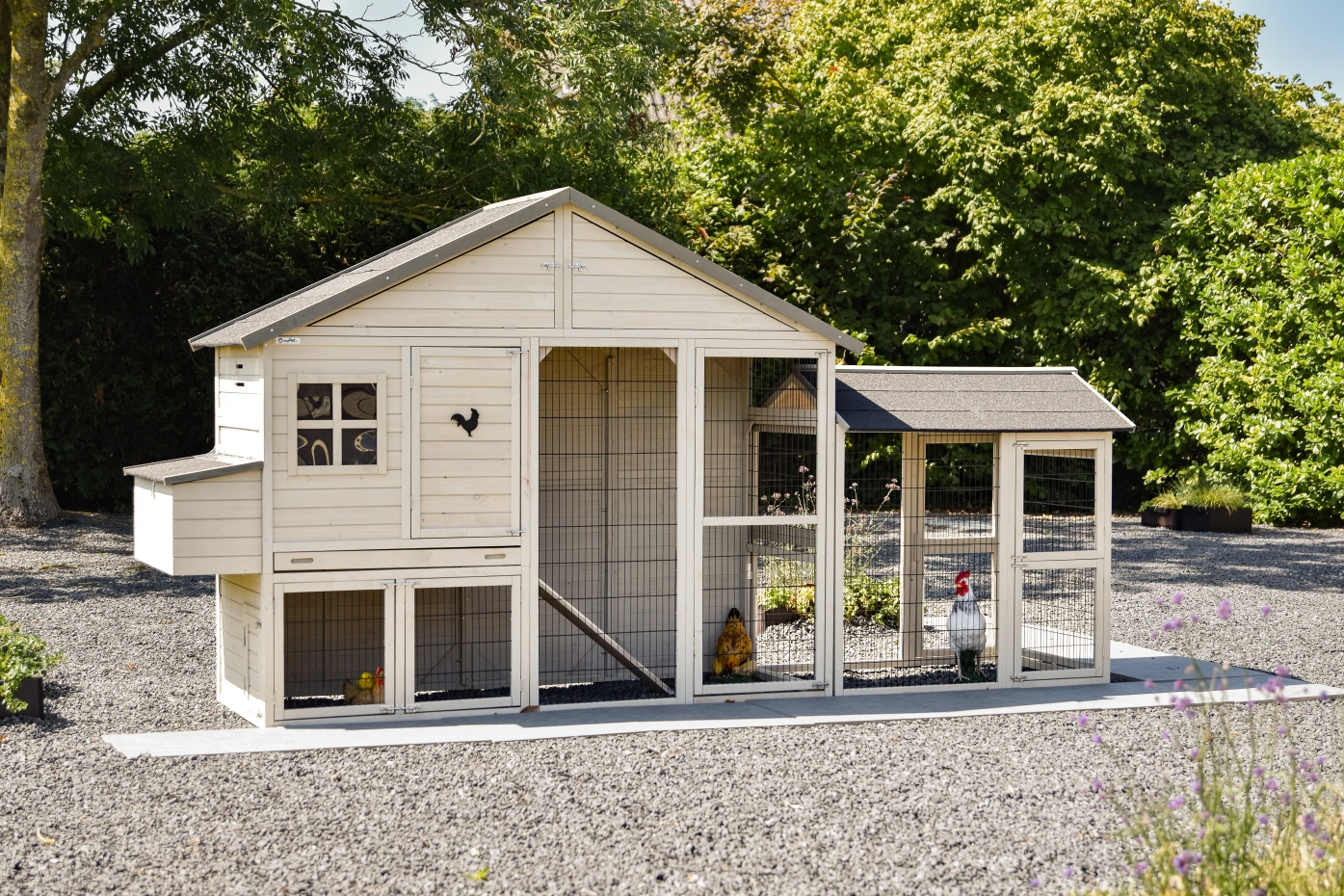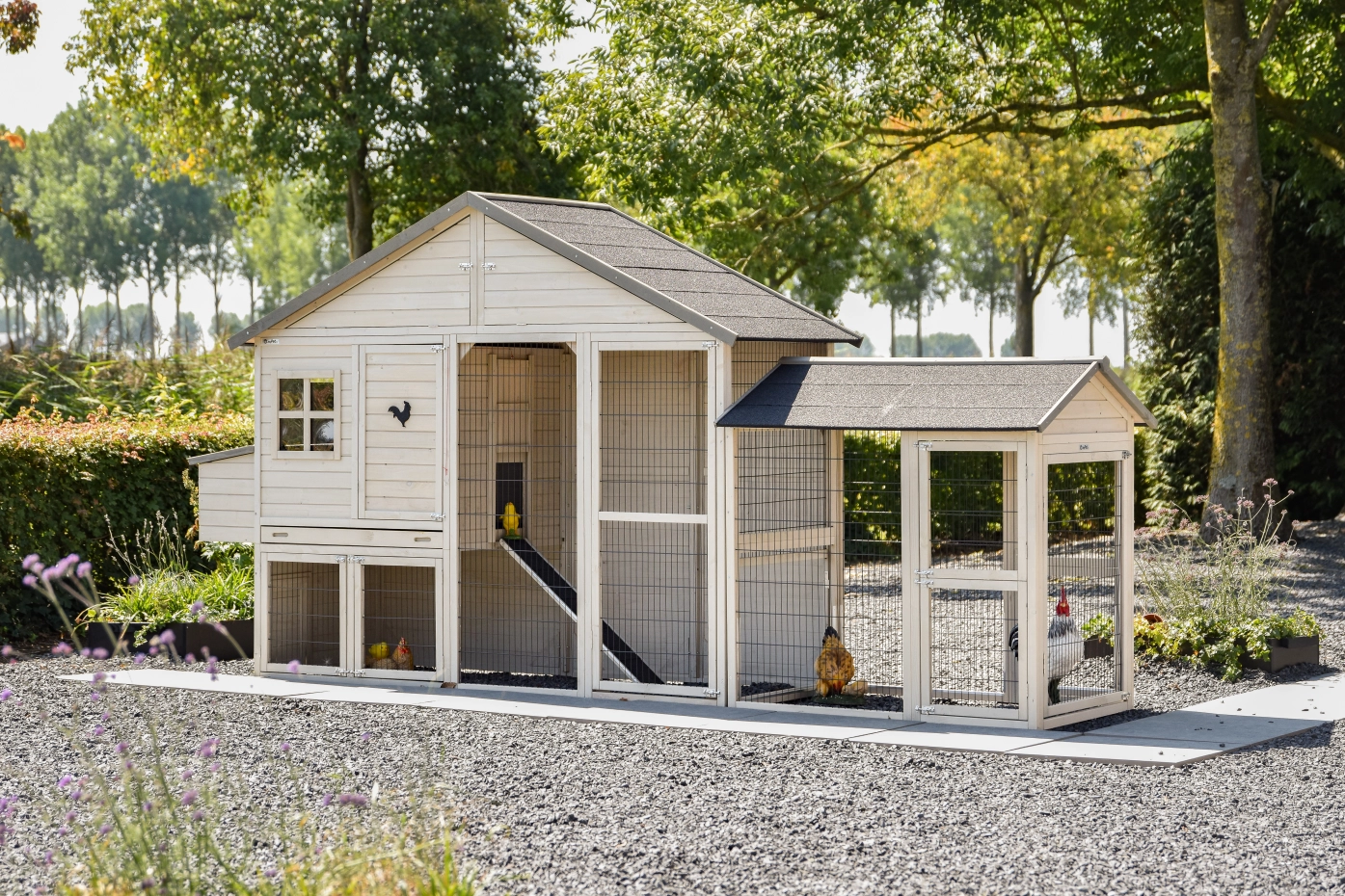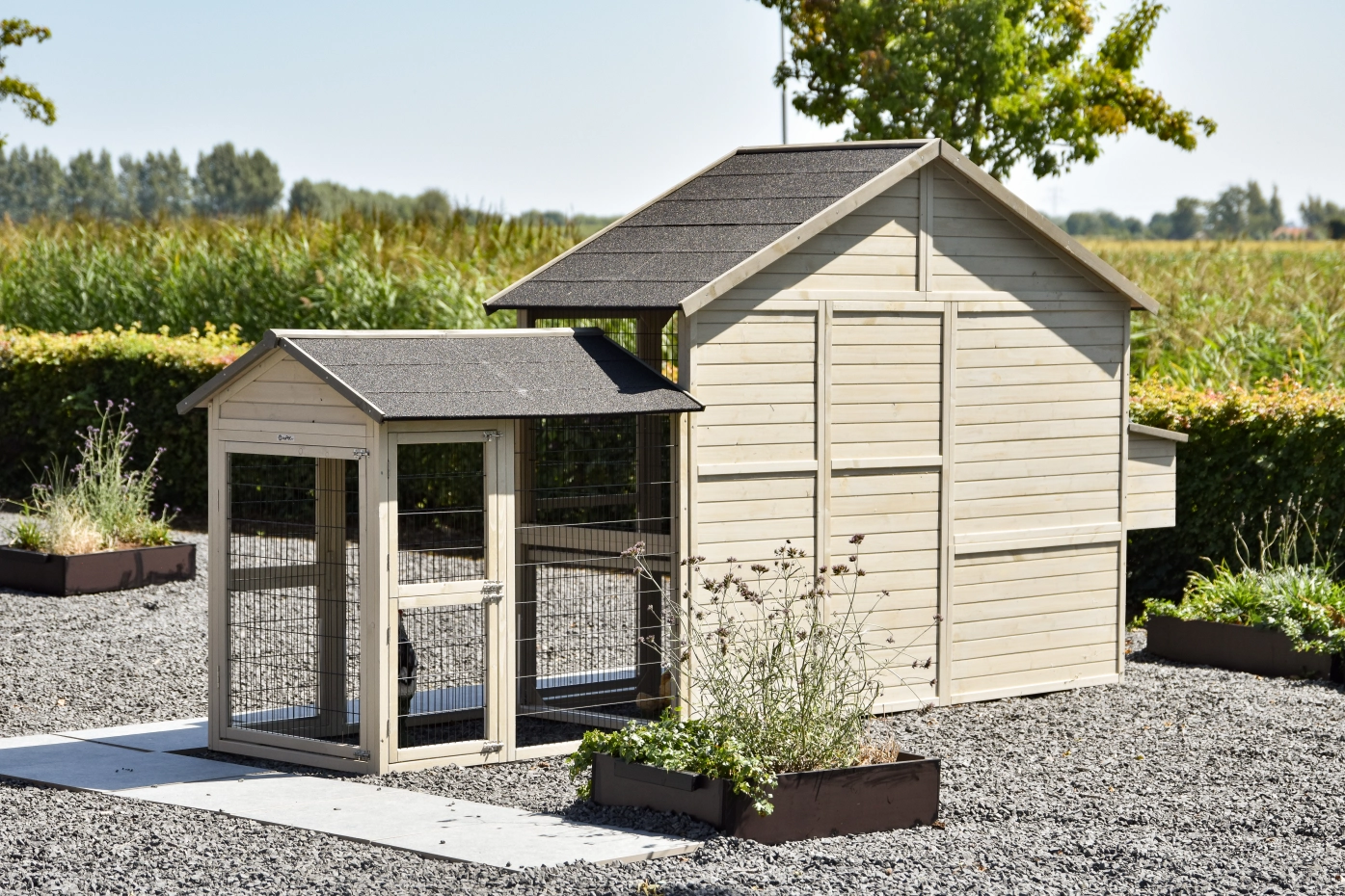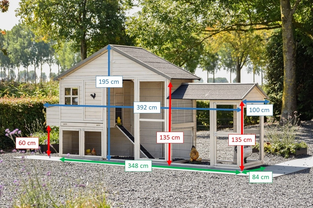 Hühnerstall Holiday Large mit Auslauf und Legenest. Hühnerstall Holiday Large ist ein schöne, praktisch und große Stall aus Topqualität. Dieser Hühnerstall hat ein große Auslauf. Hühnerstall Holiday Large ist geeignet für 6 à 10 Hühner. Max. Abmessungen, einschl. Dach, sind 392x100x195cm.