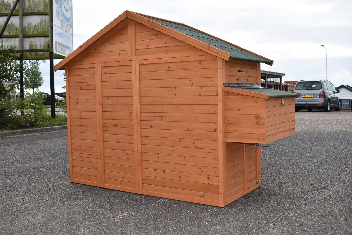 Das Hühnerhaus Holiday Medium ist ein schönes Hühnerhaus aus Kiefernholz. Auch ohne ein zusätzlich angebautes Gehege bietet dieses Hühnerhaus bereits viel Platz. Es kann außerdem problemlos mit dem Anbaugehege Space erweitert werden.