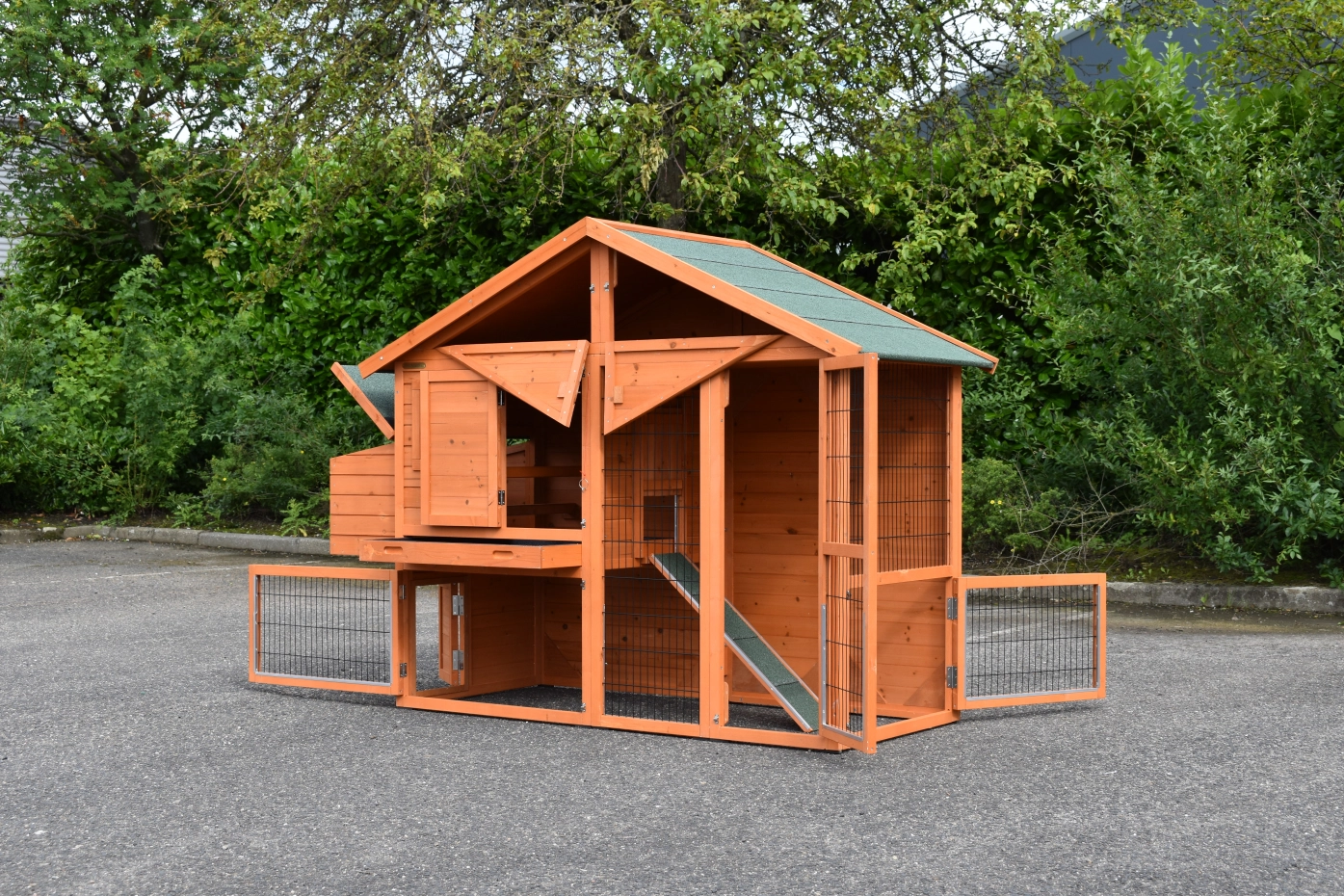 • Dieser Hühnerstall ist mit einem Legenest ausgestattet.