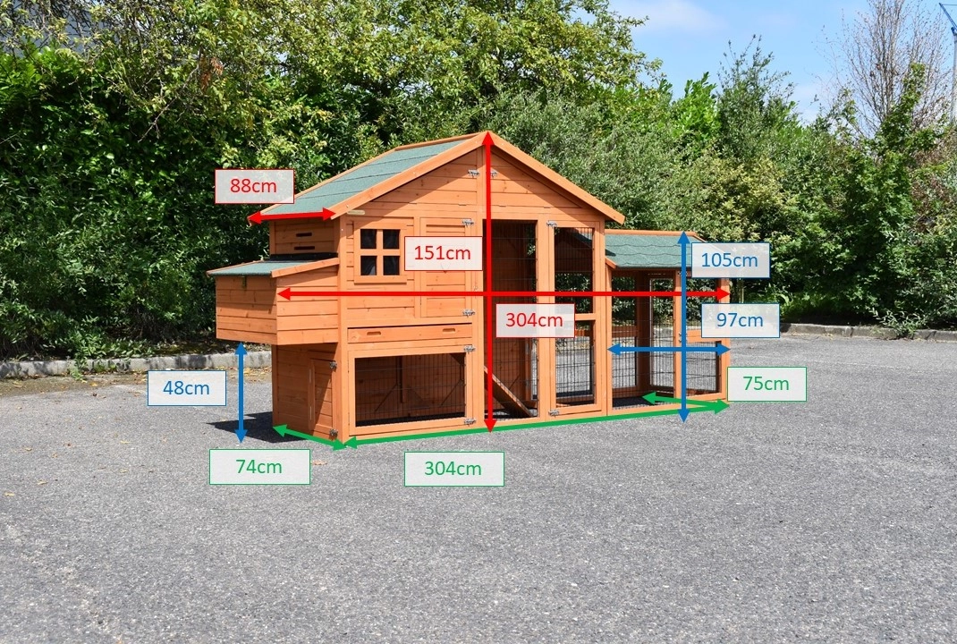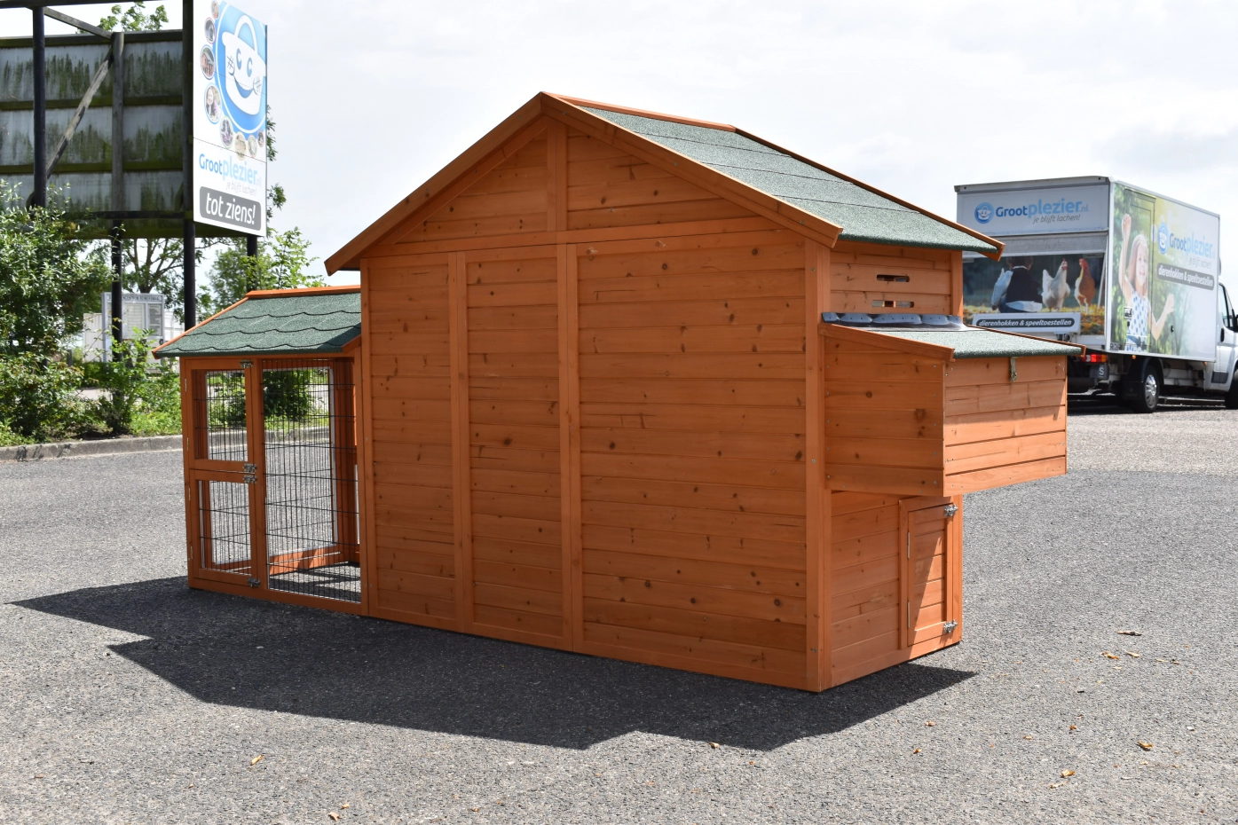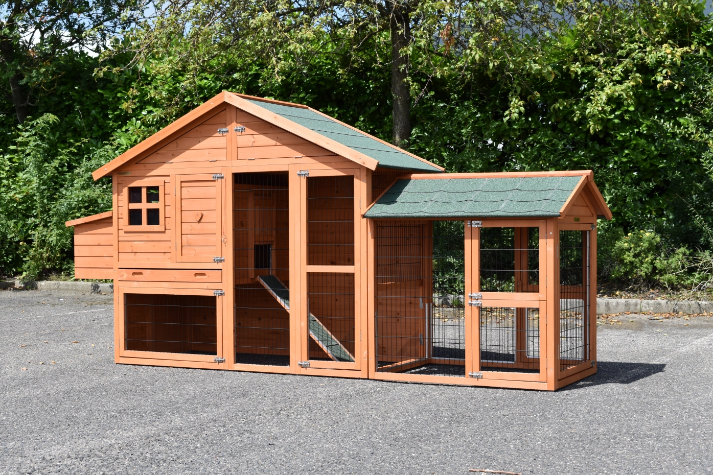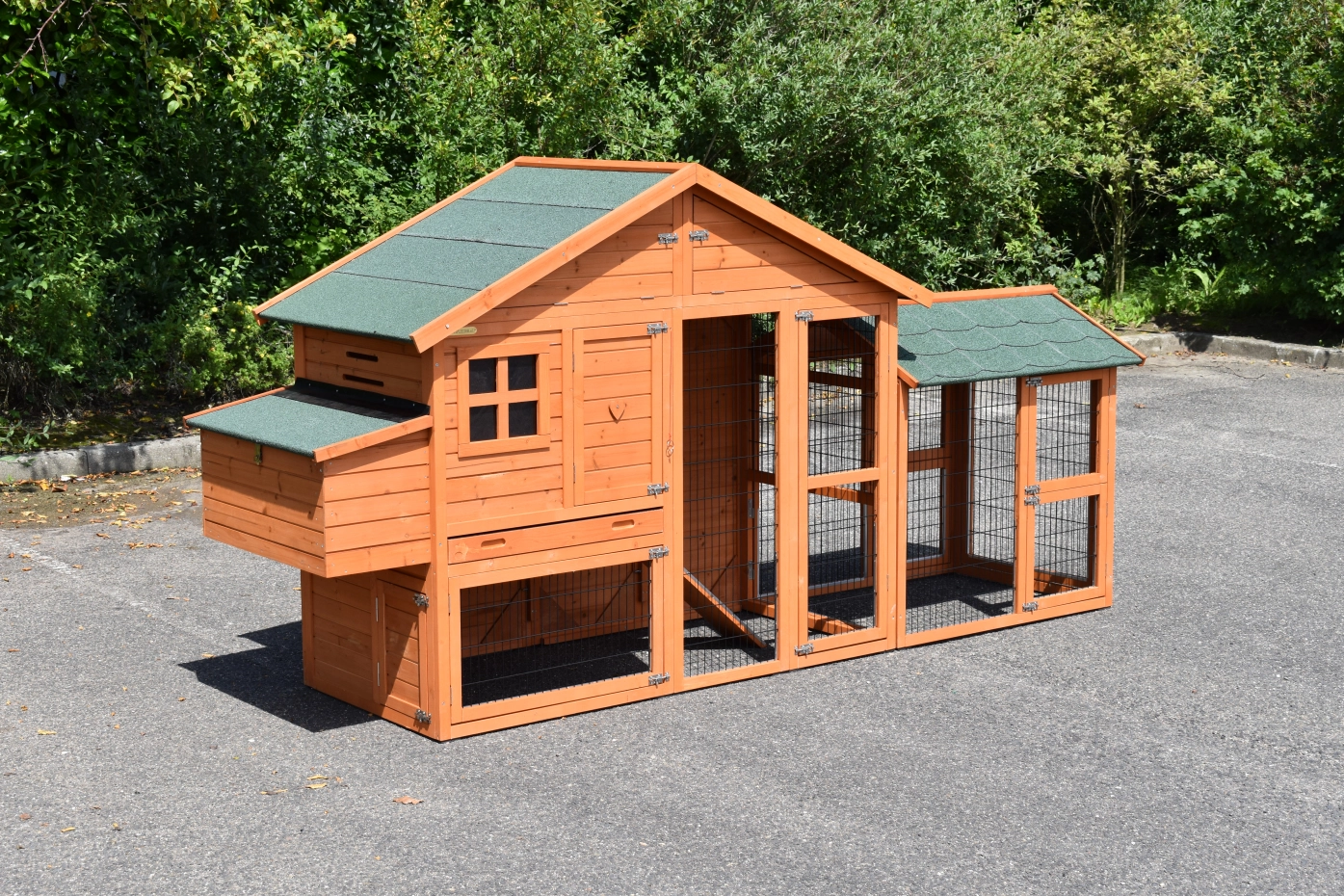 Dieser wunderschöne Hühnerstall ist außerdem auf der linken Seite mit einem Legenest ausgestattet.