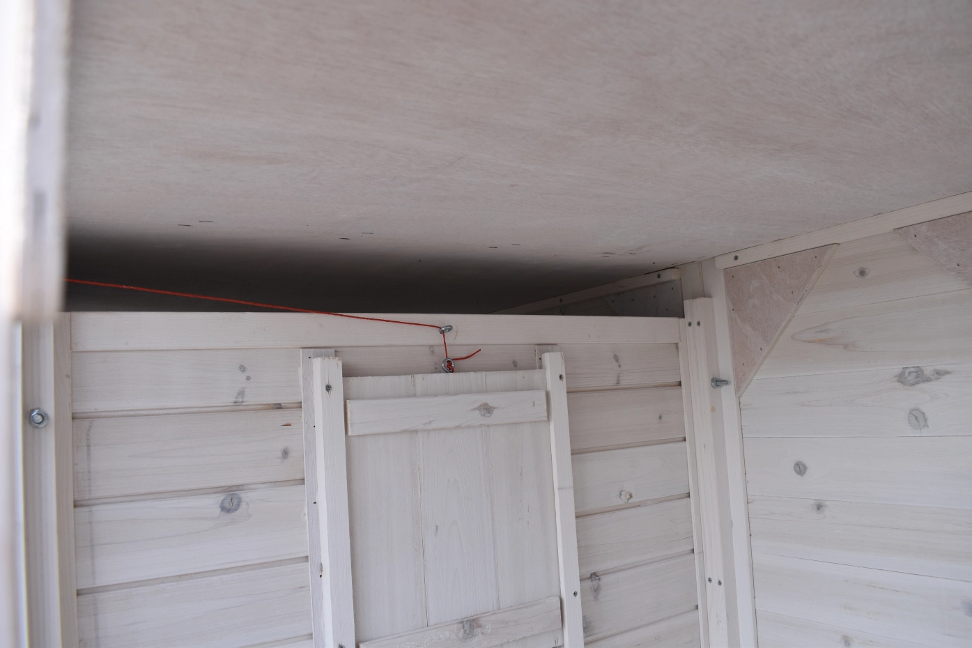 - Der Stall wurde aus schönem Kiefernholz hergestellt