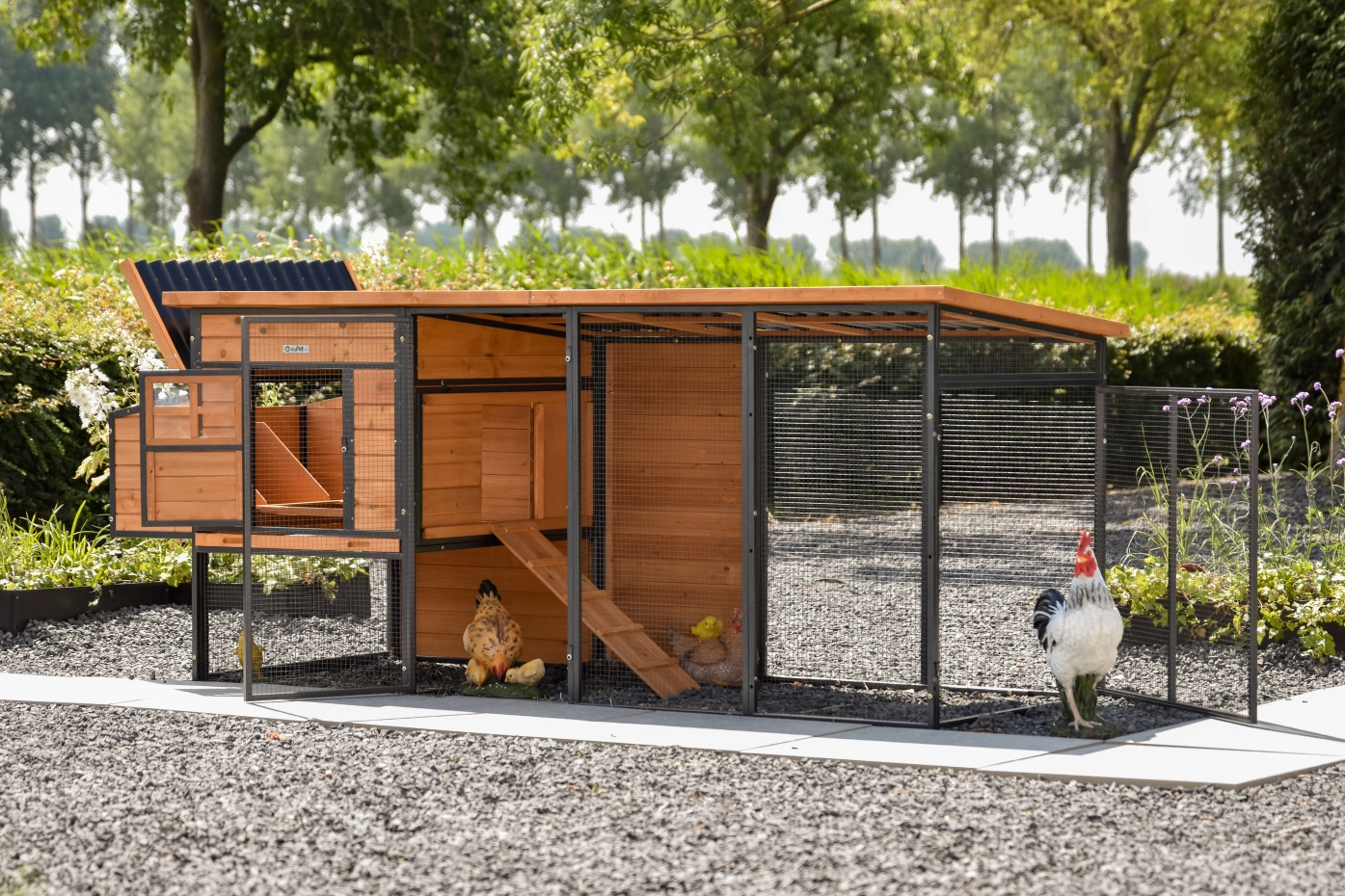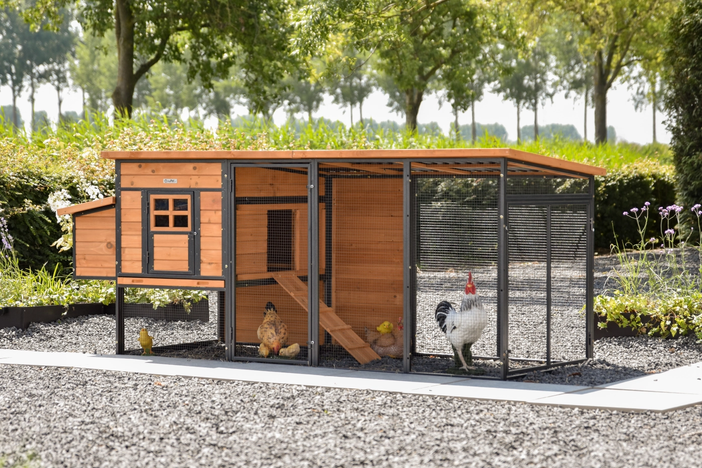 Hühnerstall Judy ist sehr geräumig und praktisch. Er bietet Ihren Hühnern eine komfortable Unterkunft und verfügt über einen großen Schlafbereich für zusätzlichen Schutz. Mit einer praktischen Reinigungsschublade, einem geräumigen Legenest und einem großen Auslauf ist er ideal für 4 große oder bis zu 9 kleine Hühner.
